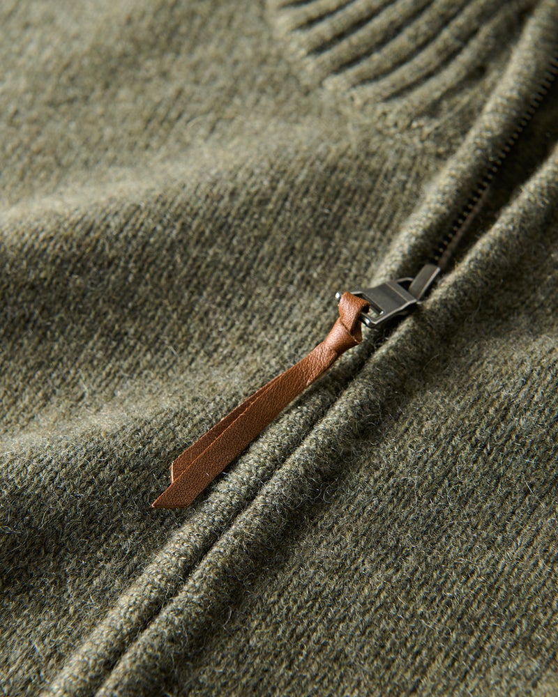 ディティールにもこだわりを詰め込みました。ジップの引き手に本革を使用し、洋服全体の完成度を高めました。衿の高さにもこだわり、シャツやカットソーなど、どんなインナーにも馴染む絶妙な高さです。