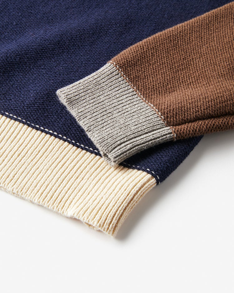 20℃前後の秋から10℃ぐらいの冬まで長く活躍するクルーネックニット。