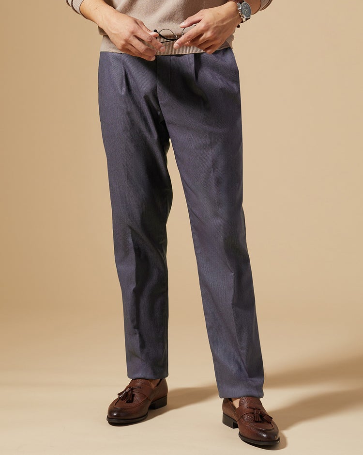 ワンタックでも細身、テーパードパンツのようなシルエットですがストレッチが効いているので動きには影響なさそうです。