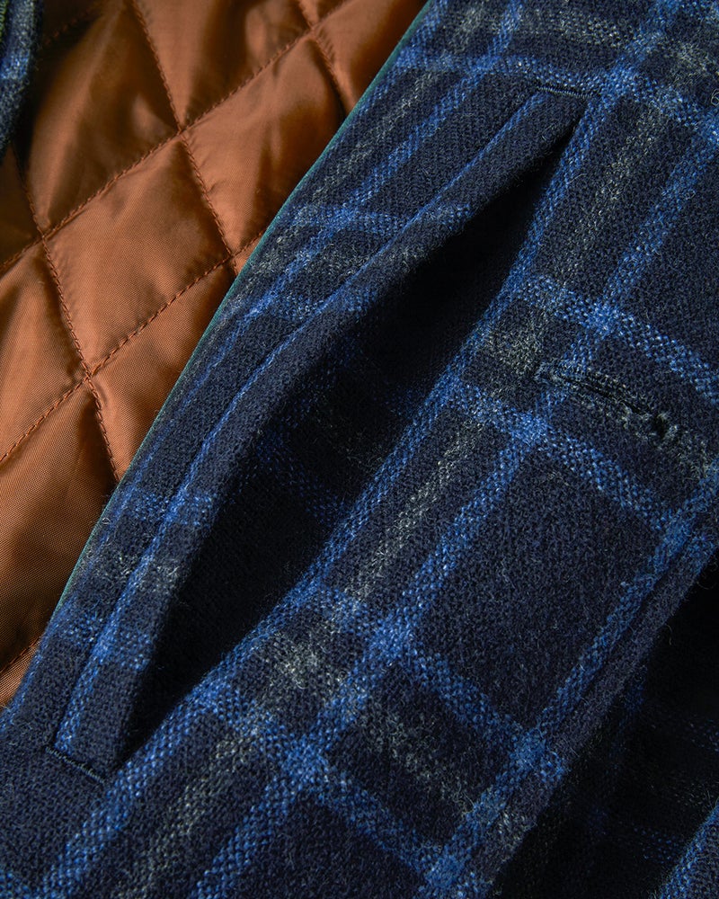 アメリカンミリタリーの定番として今も人気の高いM-43をベースに、現代風のシルエットにアレンジしたショート丈のブルゾン。両胸と腰回りにはフラップ付きの大ぶりなポケットが配されています。表面は生地洗いをかけて柔らかく仕上げたツイード素材。内面は中綿を入れたキルト仕上げにして、温かさと袖通しの良さを実現。クルマや飛行機での移動でも着やすいショート丈となっています。