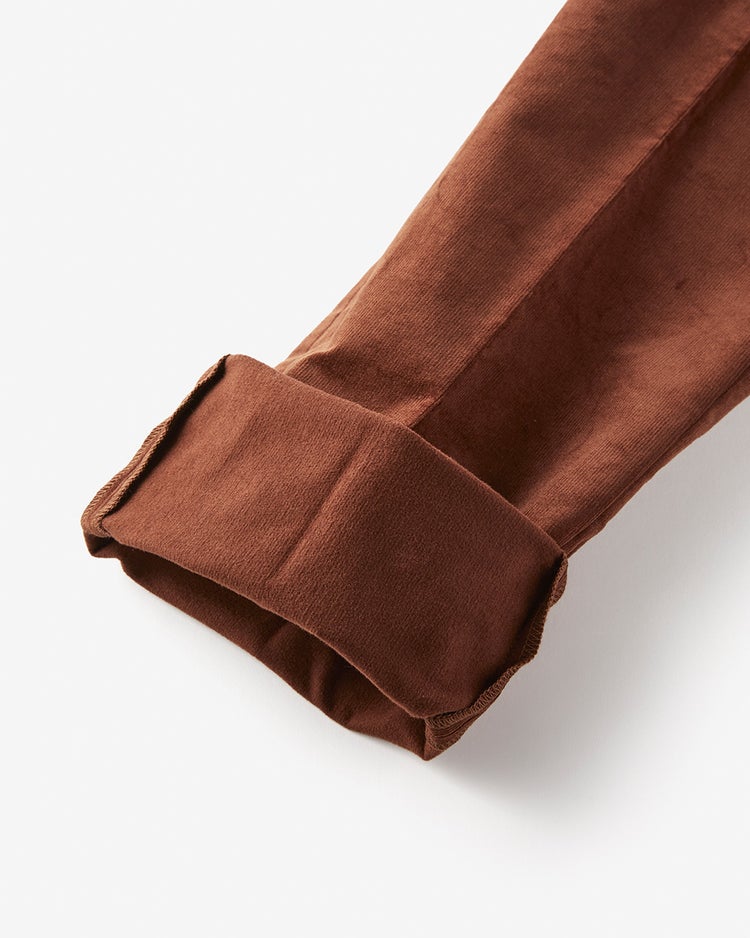 一見コーデュロイとは思わない21ウェール※という細畝の生地感は、端整かつ上品です。ストレッチを効かせて履き心地も伸びやか。50代・60代の体型データを活かした設計。お腹はすっきり、ヒップは立体的に、脚はすらりと、大人体型をスタイルよく見せます。裏面起毛で保温性もしっかり。