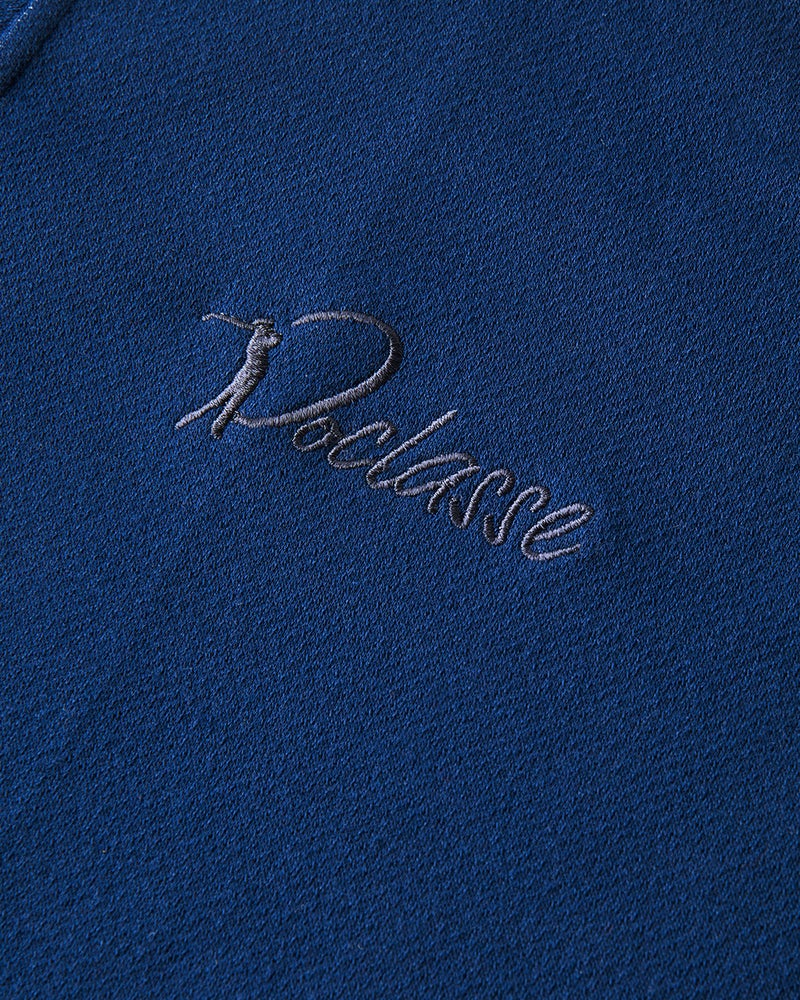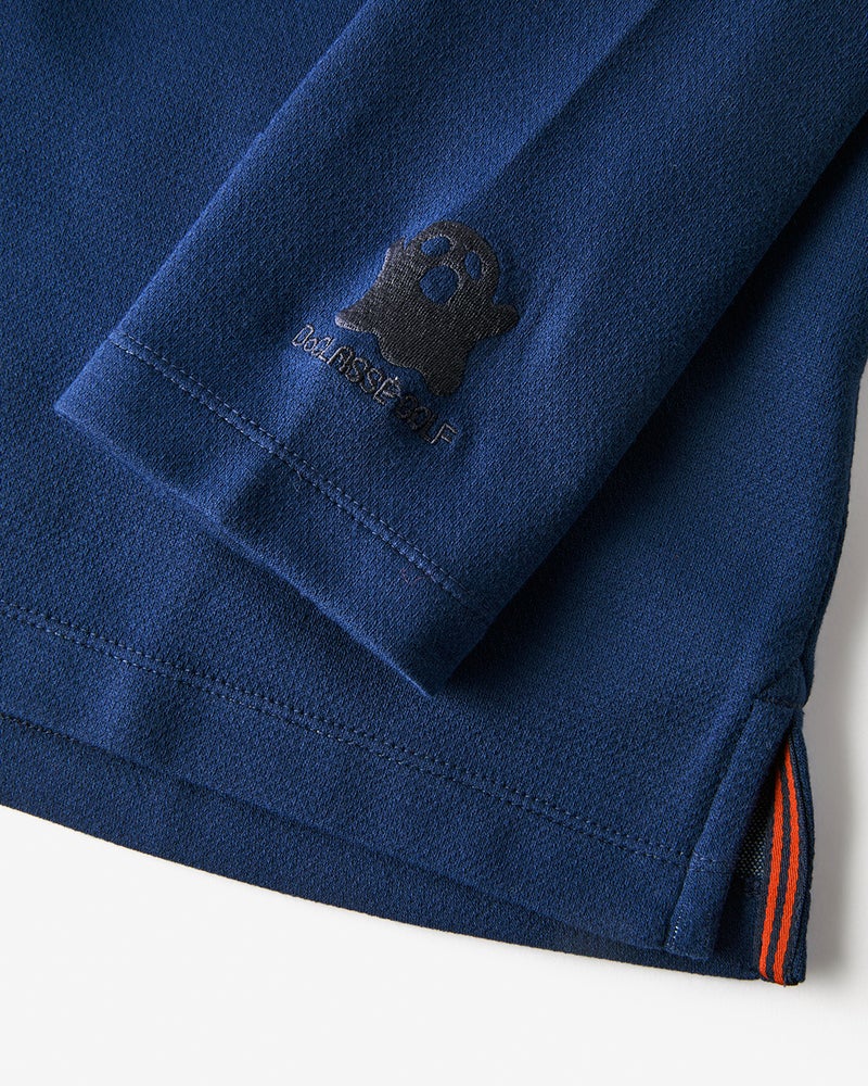 微起毛のかかったソフトな風合いに、先染めの糸を使った深みのある色。袖を前振りに設計したスイングしやすいシルエット。上前立てにはちらりと覗く布帛生地のアクセント。左胸にはワッペン、右胸にはロゴ刺繍、そして袖口の新キャラクター刺繍と細部にまでこだわりました。