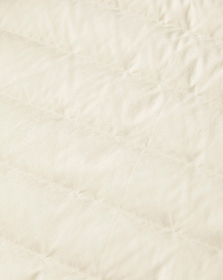 身頃はダウン90%、フェザー10%という黄金比ダウンで、体の中心部を暖めます。しかもステッチのない特殊な二重織り生地だから、ステッチの隙間から風が入らず、暖かい空気をキープ。袖下はマチを付けた可動域の広い設計。襟裏は肌当たりのよいフリースです。