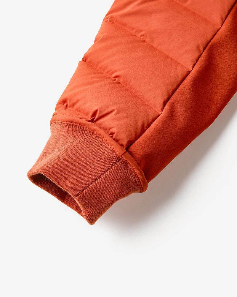 | 素材 | 表側生地/ポリエステル90%・ポリウレタン10%,裏側生地/ポリエステル90%・ポリウレタン10%,切替/ポリエステル100%,リブ部分/ポリエステル99%・ポリウレタン1%,詰め物/ダウン90%・フェザー10% |