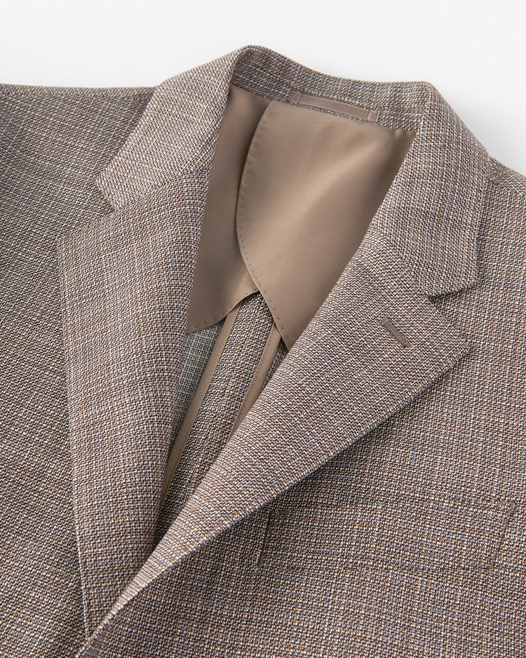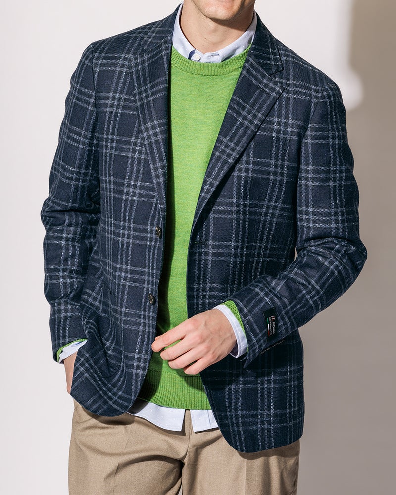 ここぞという場面で使いたいテーラードジャケットを選ぶなら、イタリアのファブリックメーカーのものが候補に挙がるでしょう。インポート生地は年々価格が上昇していますが、お手頃価格を実現したジャケットがこちら。今回採用したレダ社とフィジテックス社は、ともに原毛からこだわった旬な色柄と、最新の機能を盛り込んだ現代的な生地作りに定評ある生地メーカーです。遠目には無地に見えながら、何色もの色糸を使って織り上げることで深みを出した生地はイタリア製ならでは。体型が気になる方でもスマートに見えるこだわりのシルエット。春ジャケットの筆頭モデルと言えそうです。