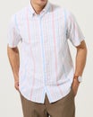 - 174cm 61kg でMサイズを購入しました。サイズはちょうど良かったです。シアサッカー生地は暑い時期に快適に過ごせます。柄のバリエーションが多くて選択に困りましたが、ホワイト・パターンは爽やかで良いです。