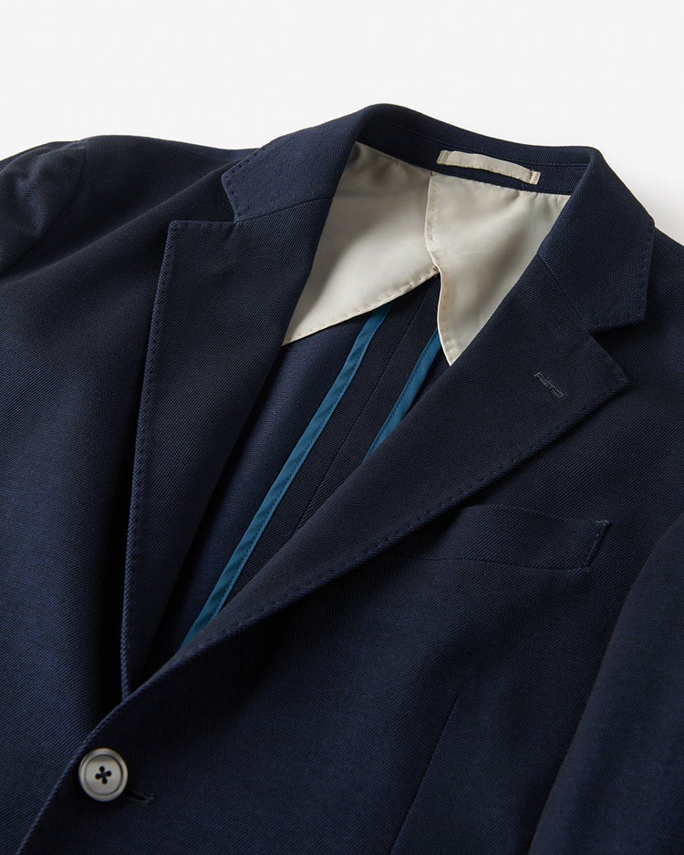 さらに、襟周りには手縫いのような風合いのステッチ、「AMFステッチ」を施しました。高級感を演出するとともに、ジャケットの完成度を高め、形をきれいに保つ実用性も備えています。