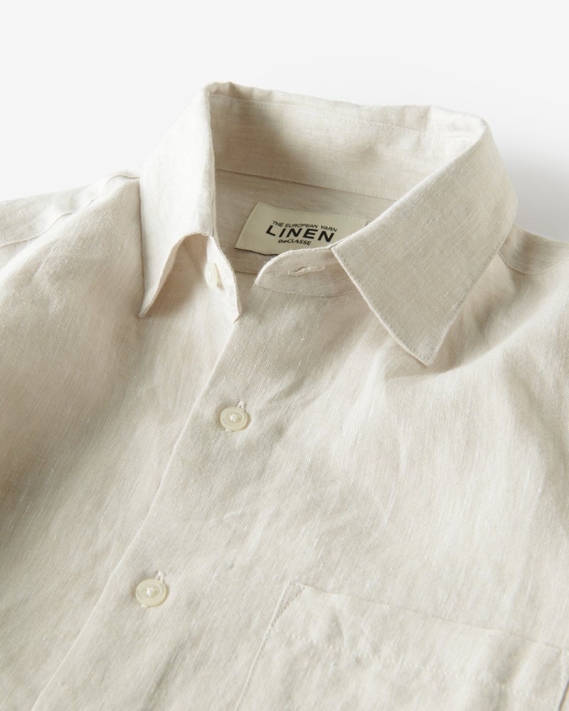 今回はヨーロッパ原産の繊細なリネンを、軽く、上品な風合いが特徴のシャンブレー織りに。さらに洗いを掛けることで柔らかく、さらっとしたドライタッチな質感を実現。『リネンはちくちくするから苦手』という方も納得の質感に仕上がりました。