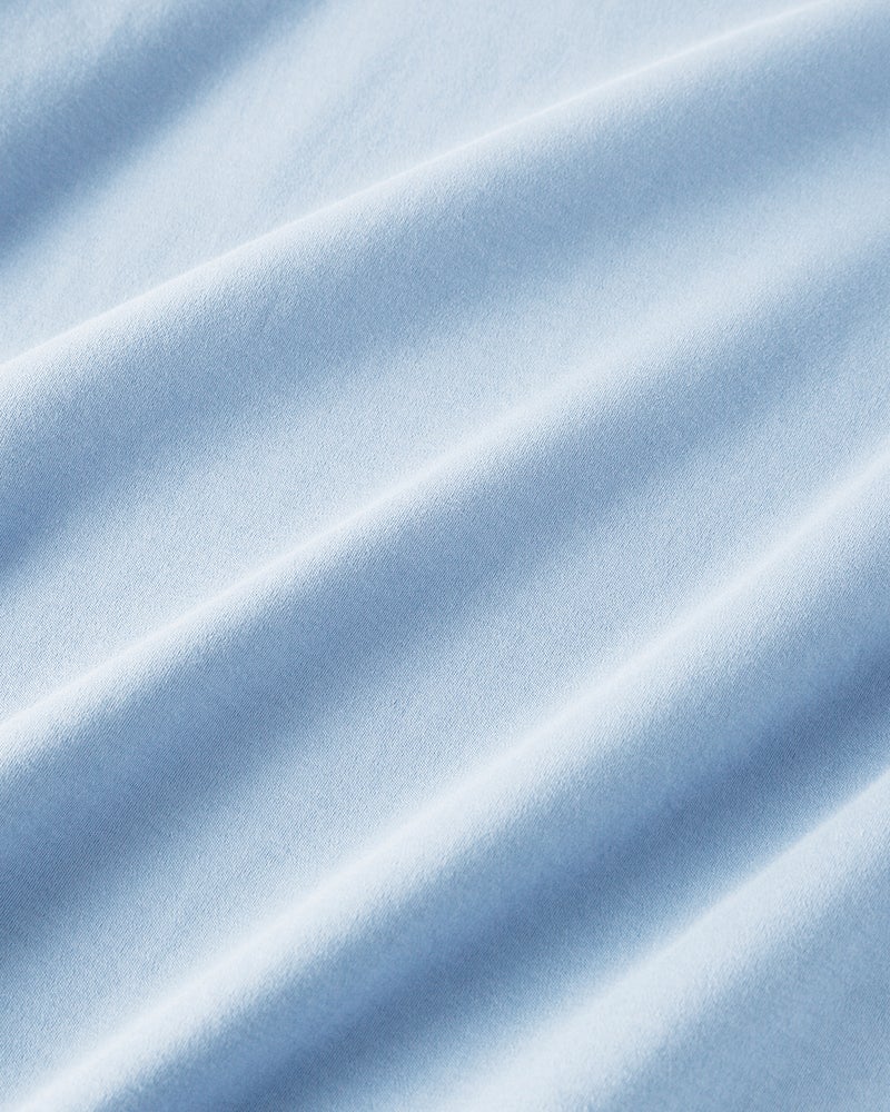 長い時間をかけて生育された超長繊維を厳選して編み立てた超長綿を使用。さらにシルケット加工を施すことで生み出された、なめらかな肌ざわりや上品な光沢はカジュアルシーンはもちろん、きれい目スタイルにも使える一枚持っておきたい逸品です。