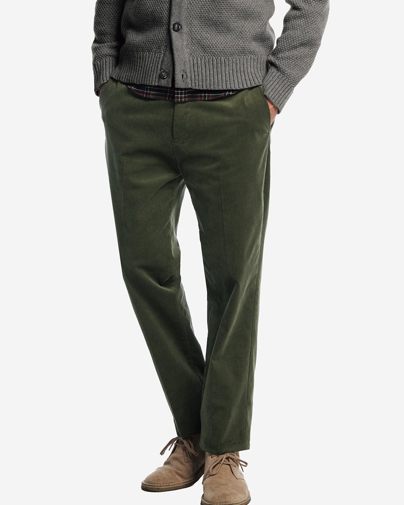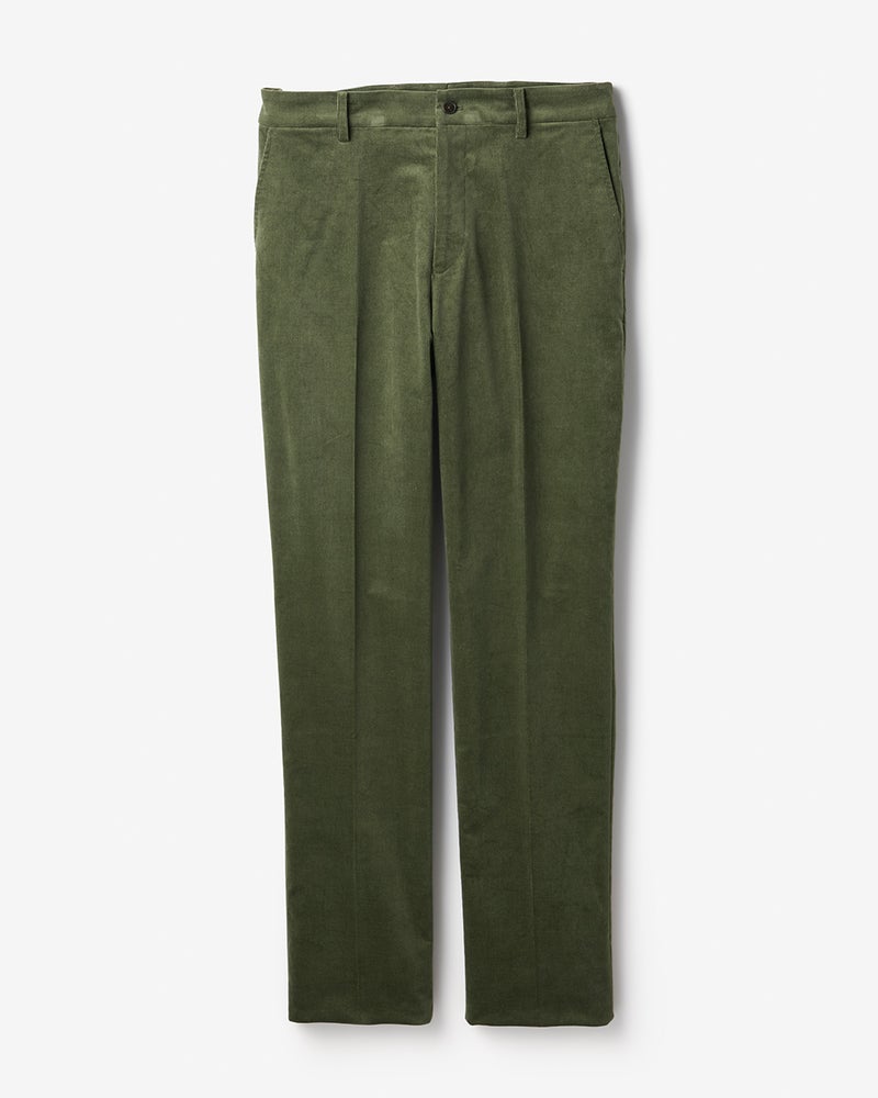 ウォーム感のあるソフトな風合いと光沢、そしてストレッチ性を併せ持つ、21ウェールコーデュロイ。1インチ(2.54cm)間に21本の畝がある細畝だから、上品でテーラードジャケットと合わせてもキマります。さらに生地の裏側に起毛をかけているので、暖かく、肌触りもソフトです。