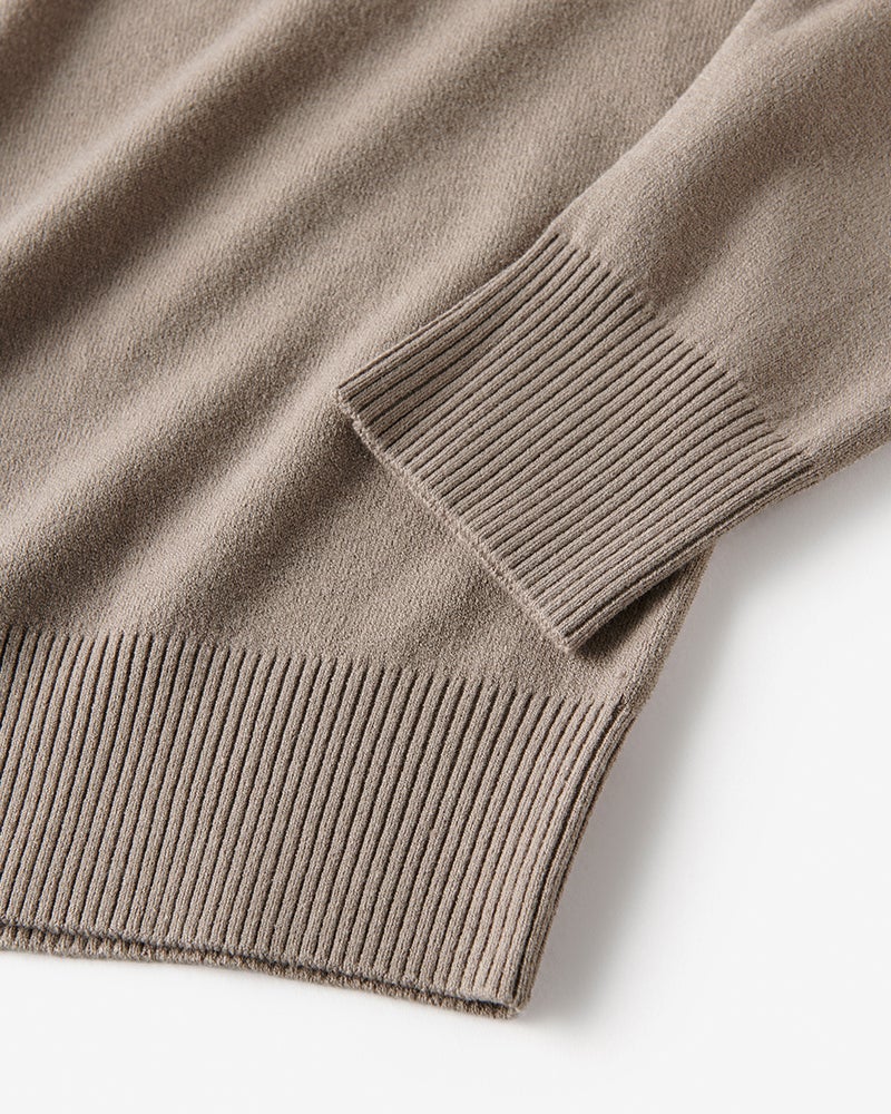 - 自分用にグリーンSサイズを購入。ジャケットの下に着るのにちょうど良い薄さで暖かくて色もきれいです。メンズのセーターはレディースよりも形がきれいで丈夫なので重宝しています。