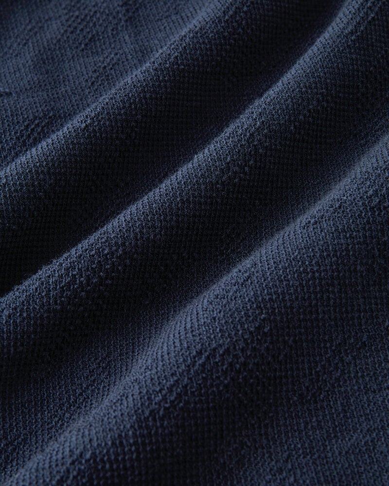 Tシャツや襟付きシャツなどの上から軽く羽織るだけで大人の上品さを引き立ててくれるカーディガンは秋口から春まで活躍するアイテムです。単色ながらジャガード織りで大柄の千鳥格子を表現しているのがこだわりどころ。ショールカラーには厚みをもたせ、襟を立ててもサマになる仕上げになっています。