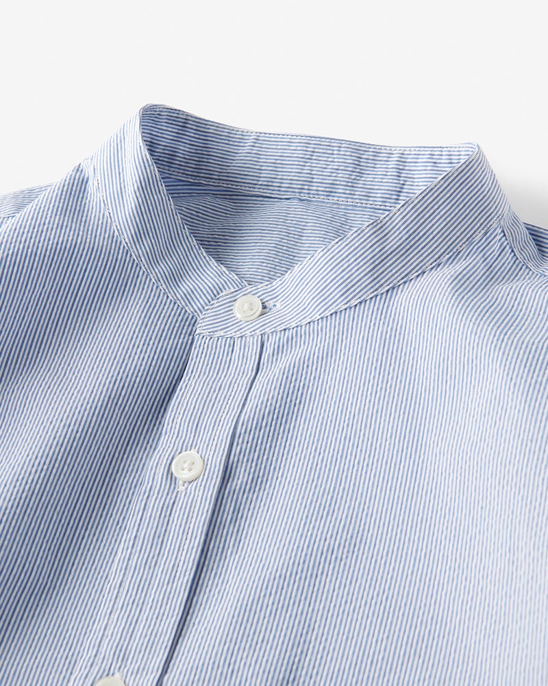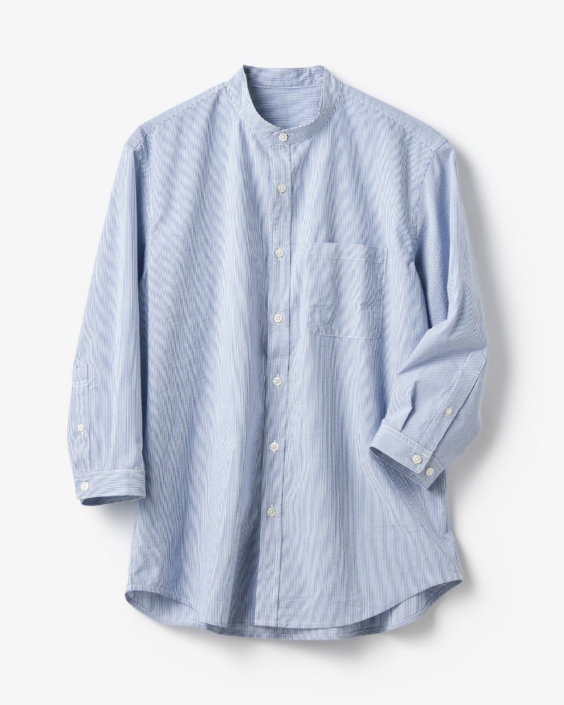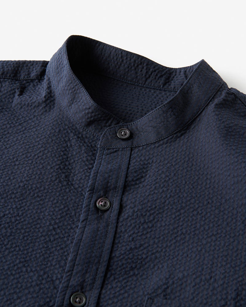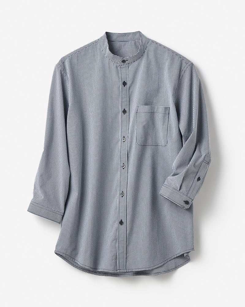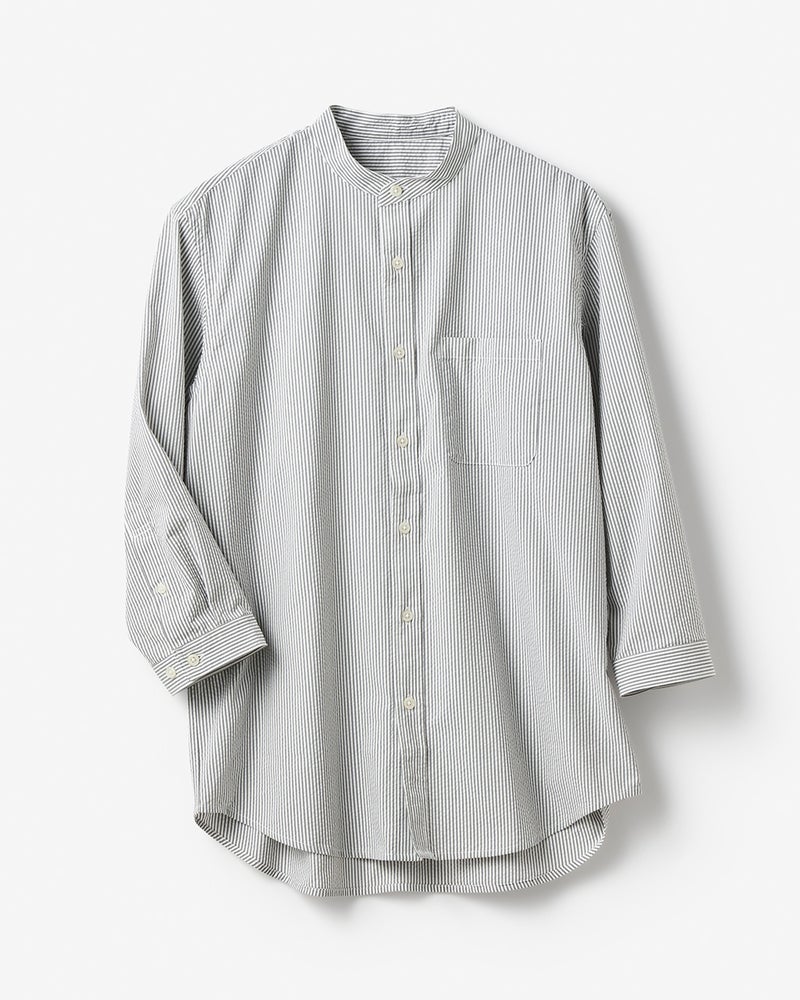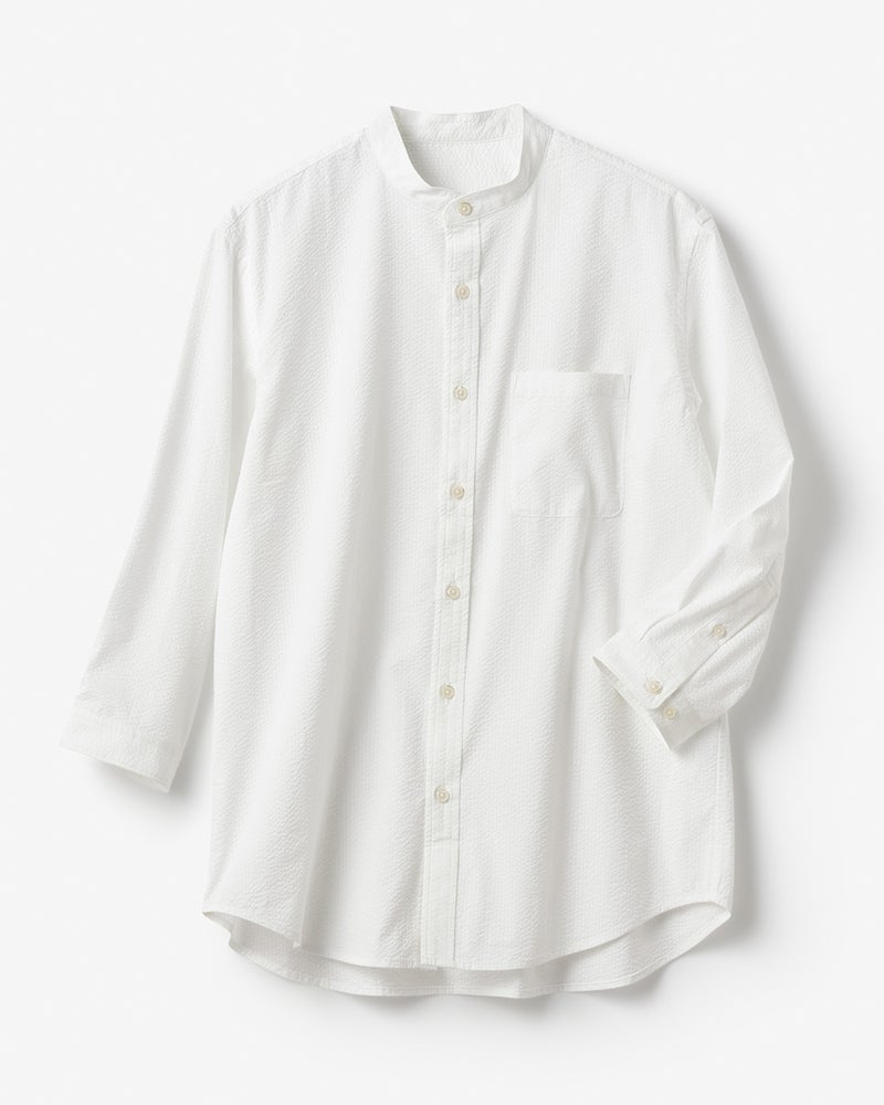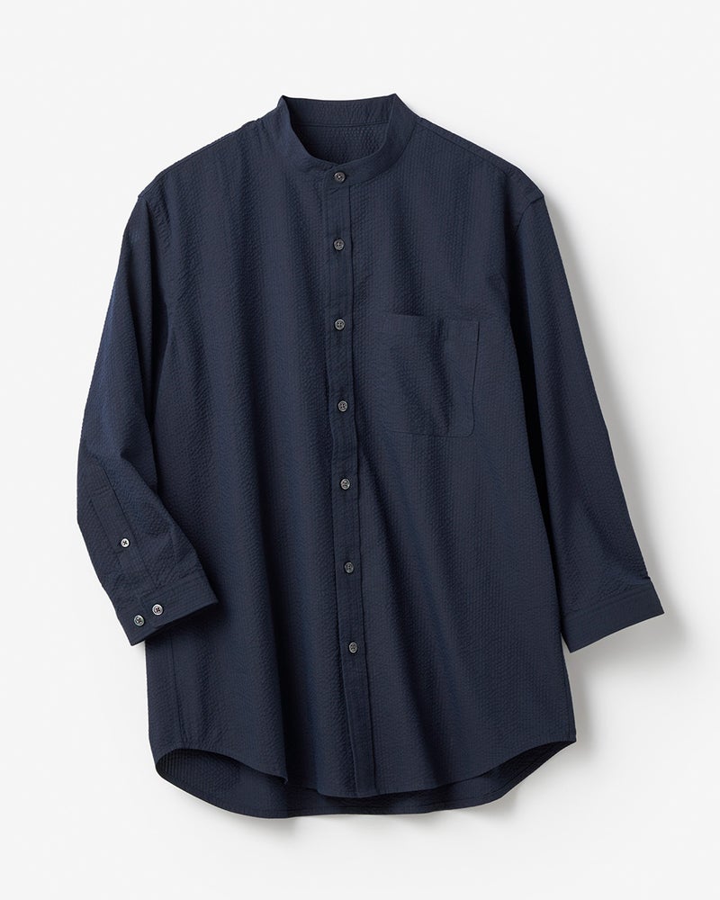 クールマックスサッカー・ スタンドカラーシャツ(七分袖)