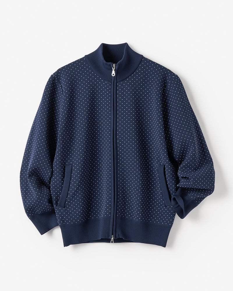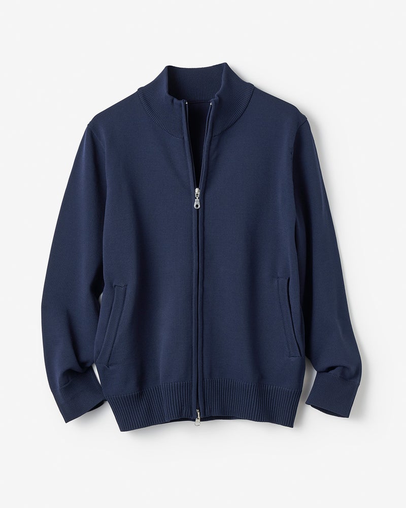 12ゲージという細かく上品な編地に仕上げたニット。軽量かつストレッチも抜群で、着ると驚くほど動きやすい。吸汗速乾性に優れ、サラッとドライな着心地。洗濯機OK。襟・袖口・裾はフィットしやすく、丈夫な仕様です。上下どちらからも開閉できるジップで、着こなしの幅が広がります。