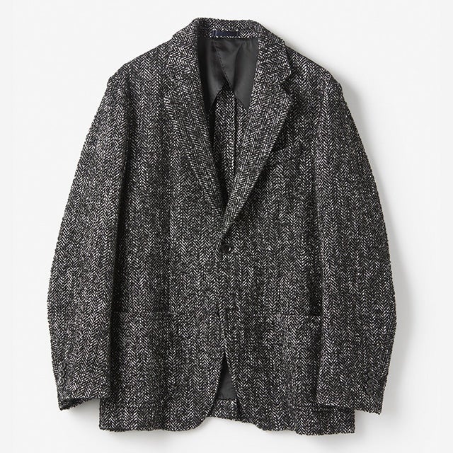 イタリアのカフィッシ社の良質なニットを、テーラードの作りで仕立てたジャケット。ざっくりとしたローゲージ編みの表地は、凹凸感と白糸が効いた独特な表情。ソフトな着心地のアンコン仕立てで、上品にウールパンツと合わせてもよし、デニムと合わせればカジュアルな装いも楽しめます。標準体型対応のA体とがっちり体型対応のAB体をご用意。
