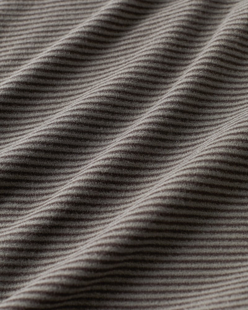 とろけるような肌触り生地の両面に均一な起毛をかけることで、きめ細やかなとろけるような肌触りに仕上げました。起毛することで繊維の間に空気の層ができて熱を逃がさず、薄手なのに暖かい、これからの季節に活躍間違いなしの優秀素材です。