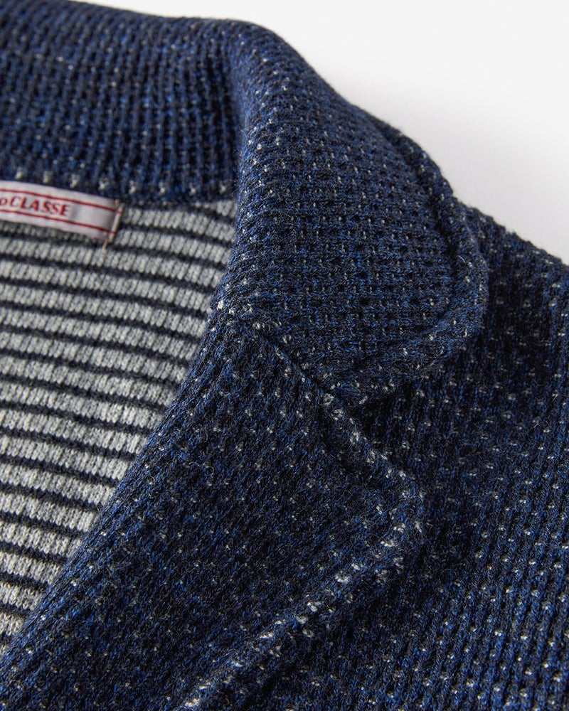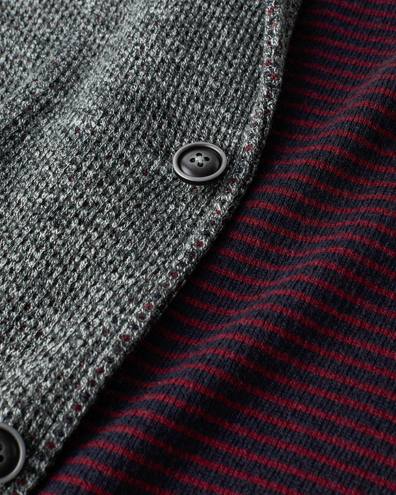 Point.3衿には衿裏を、ラペルには見返しを付けてミシン縫製して、ジャケットとしての風格を備えました。それでいて、カーディガン感覚で気軽に羽織れる、一着もっておくと便利なニットジャケットです。