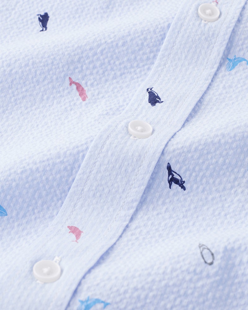 軽量でソフトなライトコットン100%のシアサッカーシャツ。生地の表面に浮かぶ波のような凹凸が特徴。凹凸のある織りが肌に触れる面積を減らすので、肌離れがよく、汗ばむ季節も涼しくて爽快な着心地。さらに、凸凹しているので、シワが目立ちません。