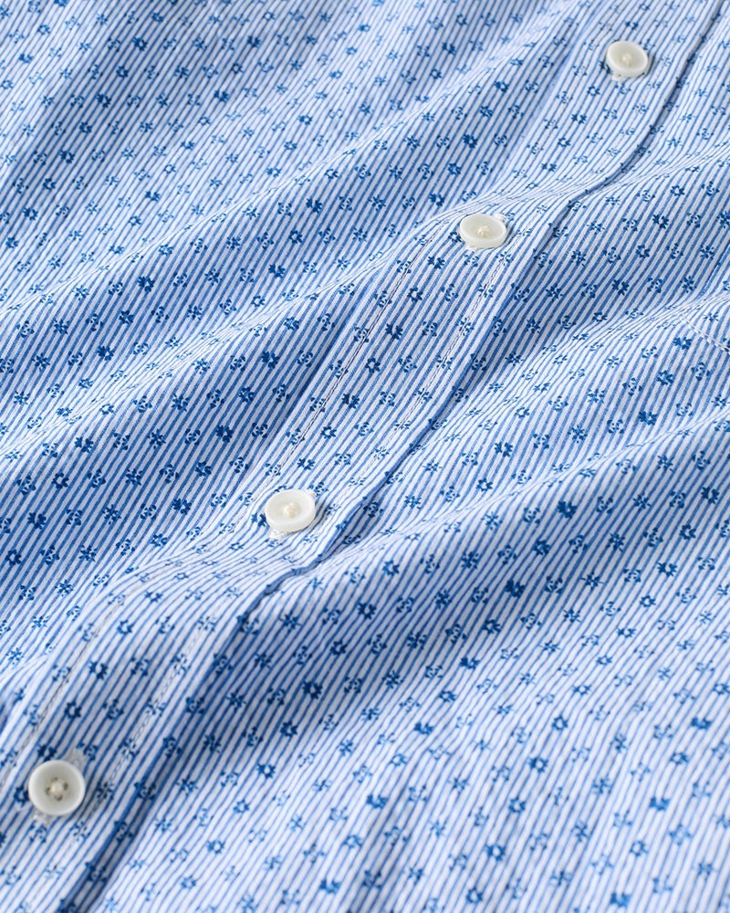 • 軽量でソフトなライトコットン100%のシアサッカーシャツ。生地の表面に浮かぶ波のような凹凸が特徴。凹凸のある織りが肌に触れる面積を減らすので、肌離れがよく、汗ばむ季節も涼しくて爽快な着心地。さらに、凸凹しているので、シワが目立ちません。