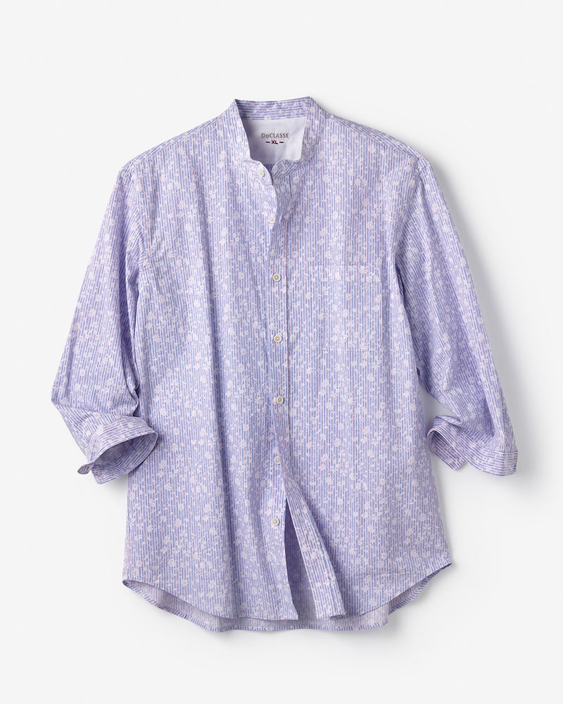 • 長袖より軽快で、半袖より大人っぽい7分袖で、衿はすっきり知的なスタンドカラー。大人の体型研究を活かした立体設計だから、シルエットはもたつかずすっきり見えます。