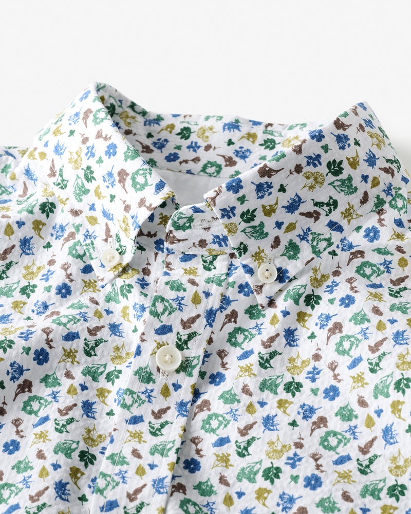軽量でソフトなライトコットン100%のシアサッカーシャツ。生地の表面に浮かぶ波のような凹凸が特徴。凹凸のある織りが肌に触れる面積を減らすので、肌離れがよく、汗ばむ季節も涼しくて爽快な着心地。さらに、凸凹しているので、シワが目立ちません。