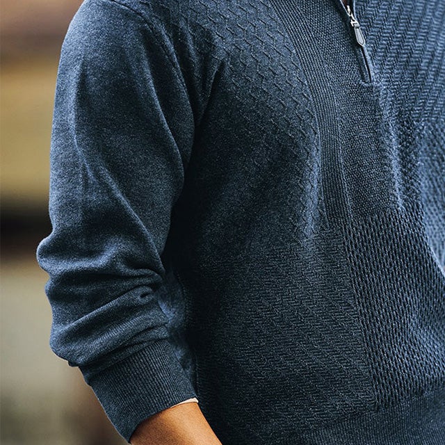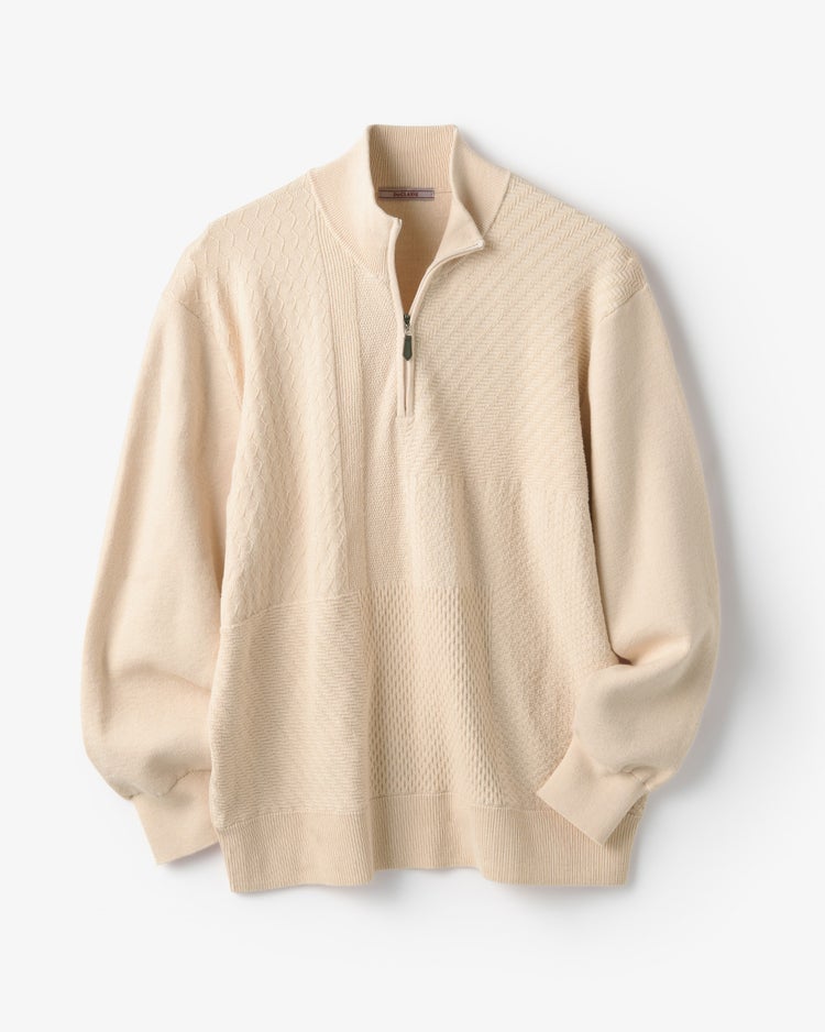 コットンブレンド巧み編みハーフジップ