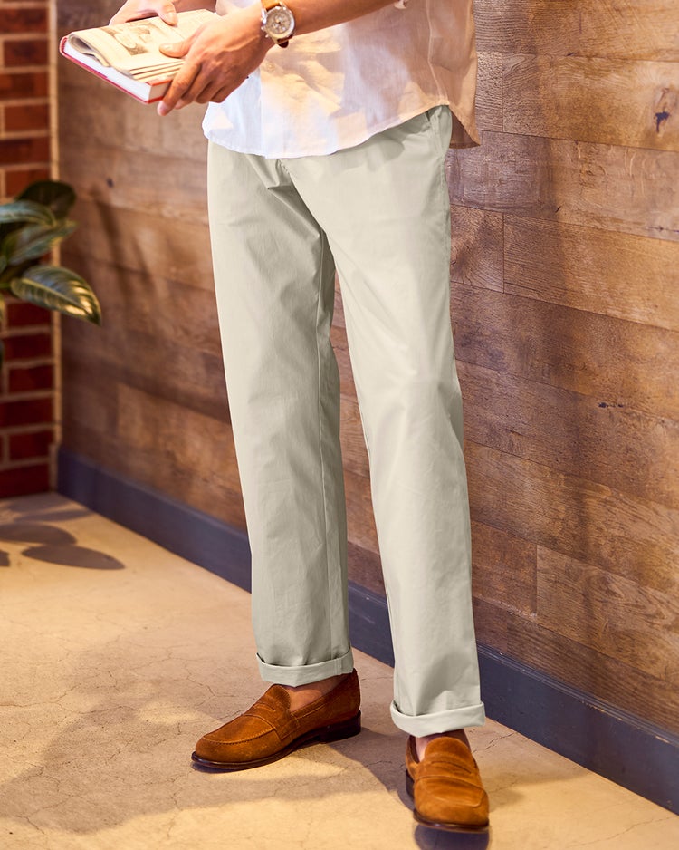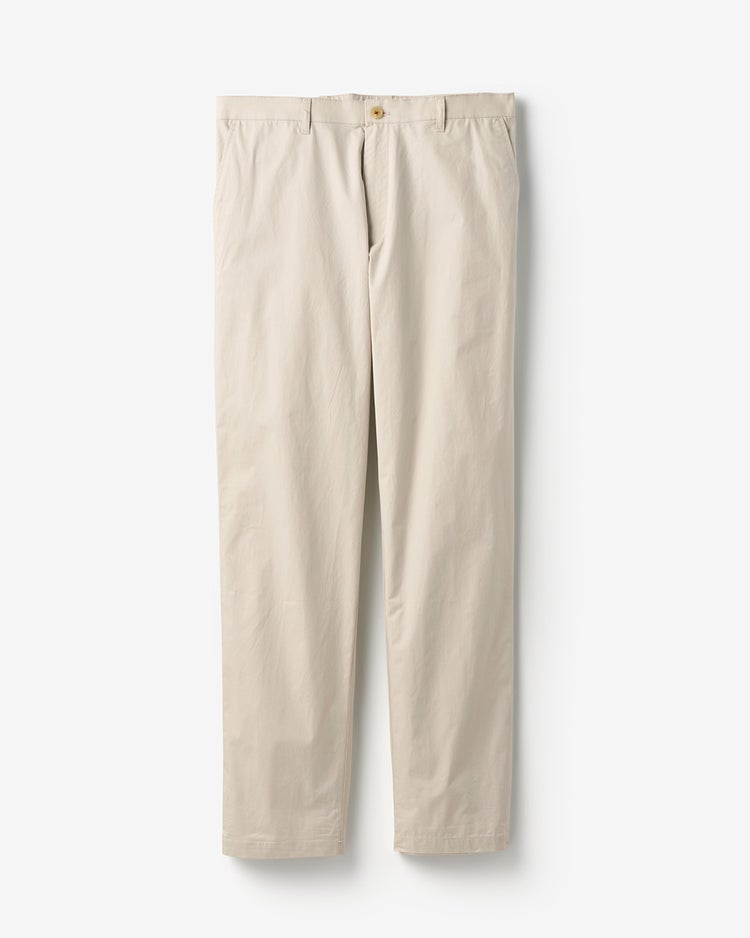腰周りはゆとりがあるのに、裾にかけてやや細くすることで、太すぎず、きちんと感もある、新しいリラックスシルエット「ワイドテーパード」が誕生しました。生地は薄くて丈夫なコンパクトツイル。縫い目にはステッチを入れて、製品洗いをかけたカジュアルな仕上がり感です。