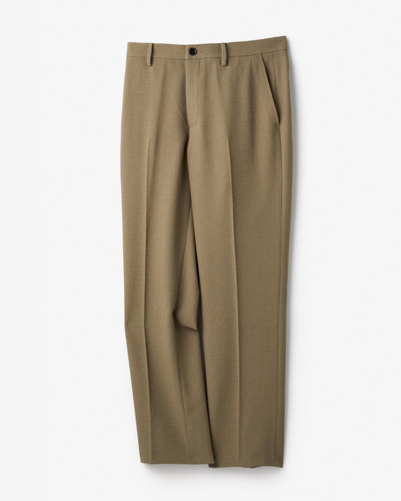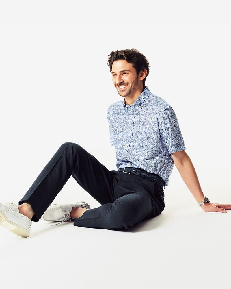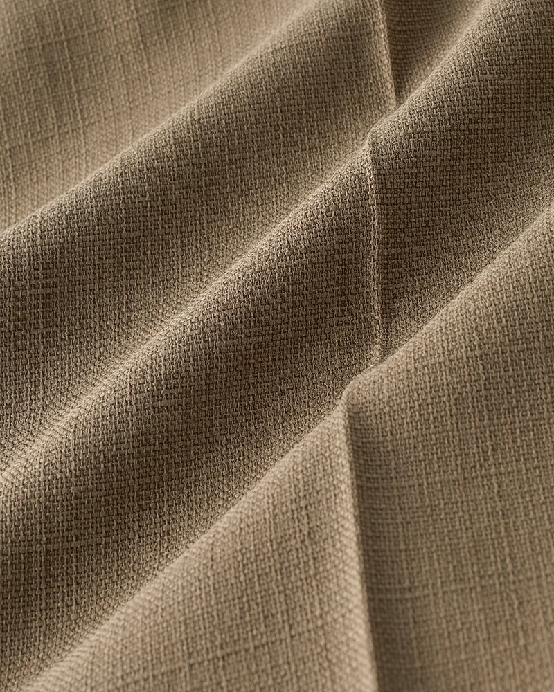 • 風格と清涼感のある麻調の生地は、汗をかいても動き回っても、とにかくシワになりにくい、イージーケア機能付き。洗濯後もすぐ乾き、型崩れもしにくいからお手入れもラクです。
