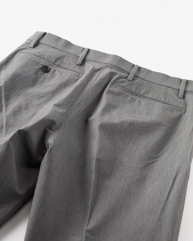 裾に向かって細くなる、すっきりスリムなシルエットで、ノータックです。人気タイプの進化版。わたりとひざ幅を少しだけ細く改良。後ろわたりの幅を少し細くしたので、ヒップ、太ももがすっきり見えます。ほどよくスリムな大人のすっきりシルエットです。