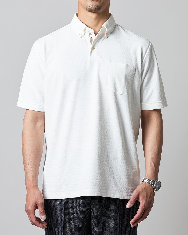 吸汗速乾ジャガードボーダーサラッとポロ 半袖