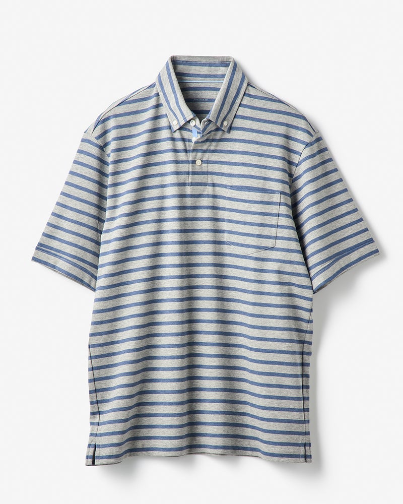 • 超長綿リファインドポロ 半袖 詳細画像 グレー×ブルー 1