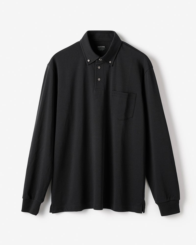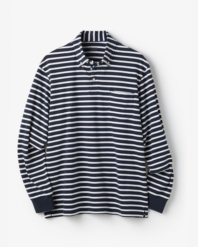 ボタンダウンのふっくらとした衿のロールは、正面から見ても、横から見ても端正な印象。台衿付きの立体感のある衿は、洗っても型崩れしない丈夫さも備えています。