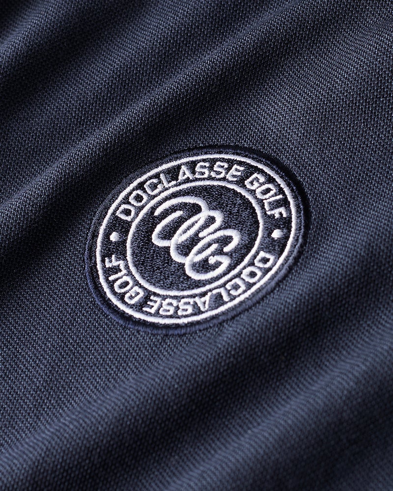 ゴルフにも活躍するモックネックのトップス。前、後ろ、袖の5ヵ所の刺しゅうがポイント。