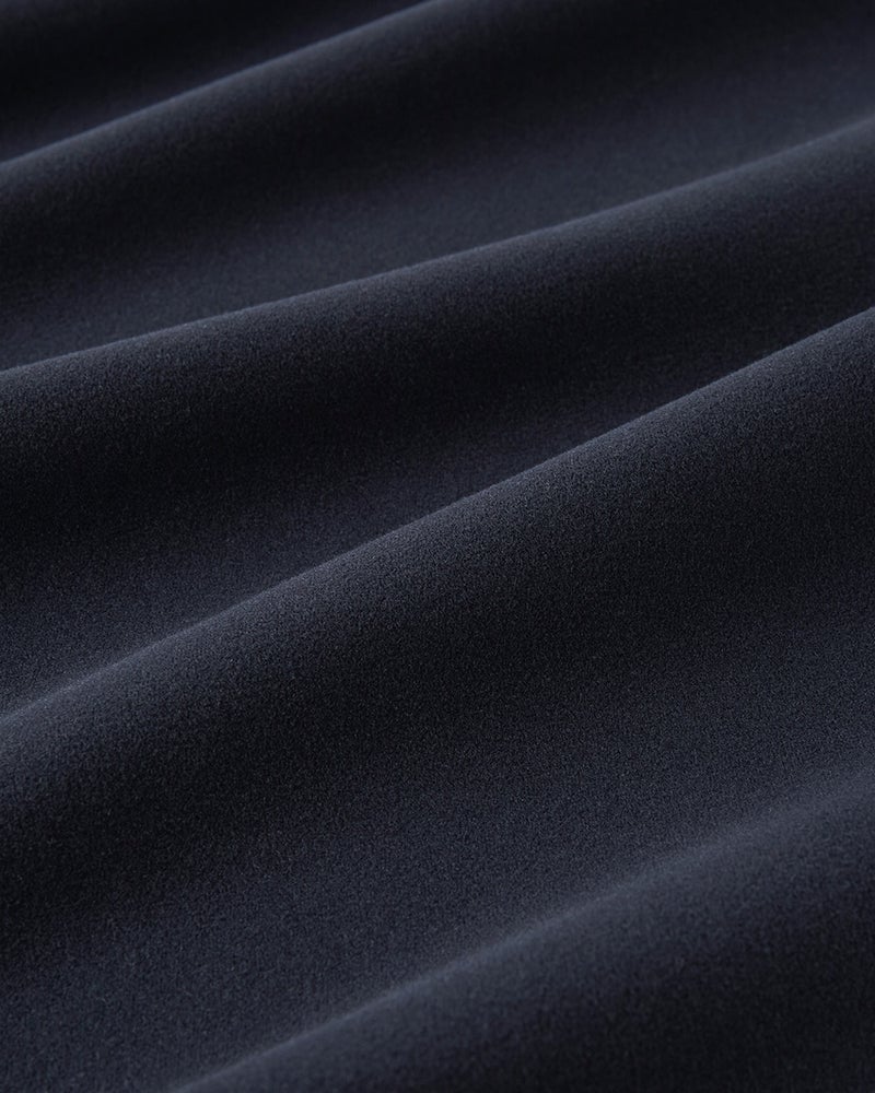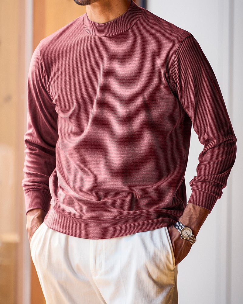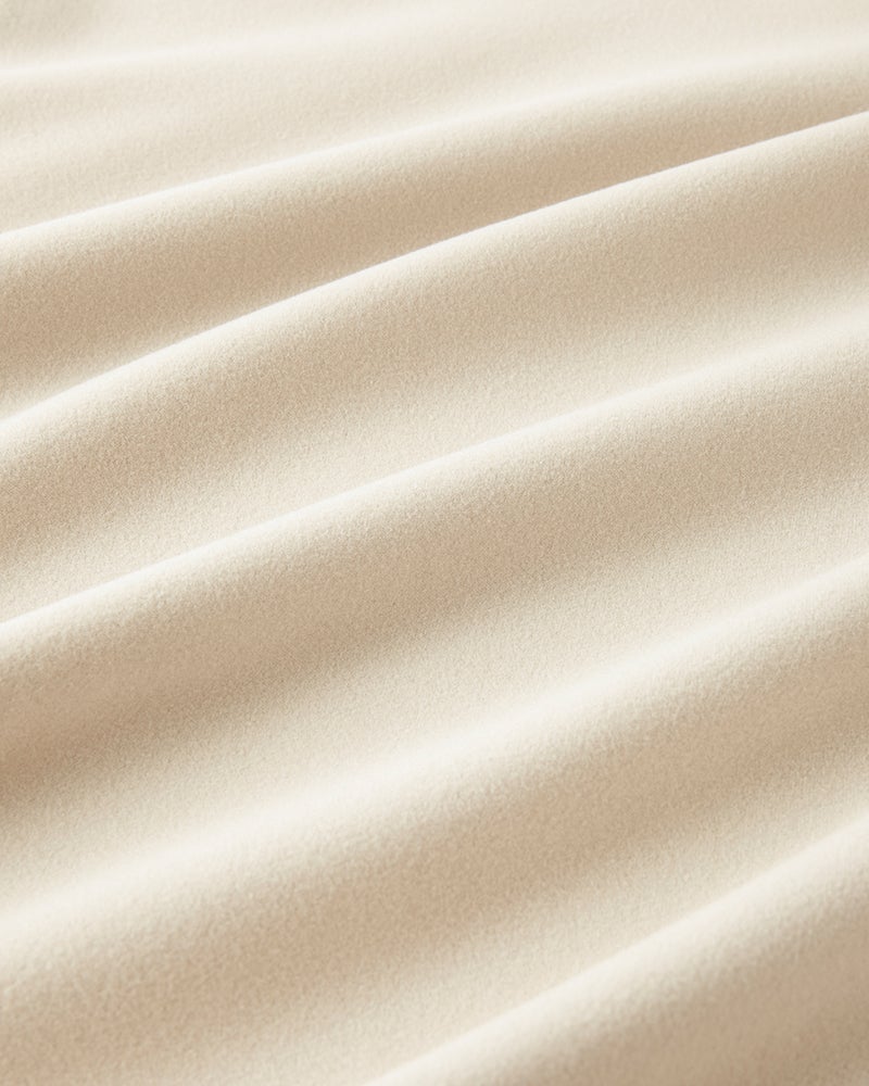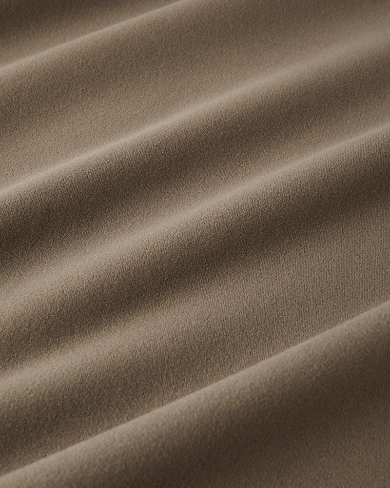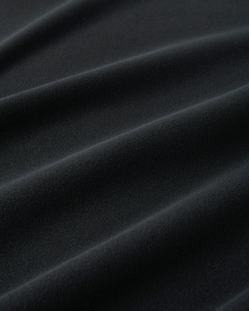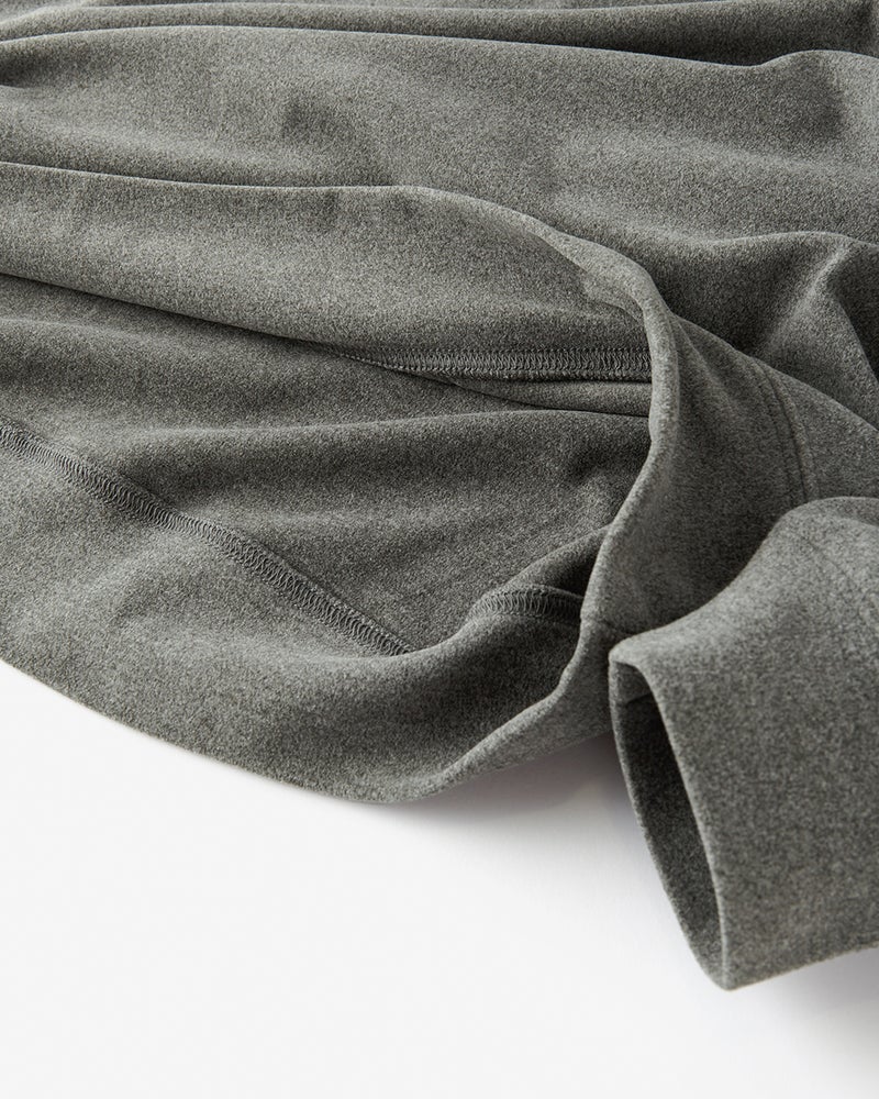 生地の両面に起毛をかけた、なめらかな肌触りのウルトラソフト生地。起毛することで、繊維の間に空気の層ができて熱を逃さず、薄手なのに暖かい。首元までとろける肌触りのハイネックとタートルは毎年人気です。今年は新たにアームホールのワキ下前後に、汗の臭いを分解消臭するデオドラントテープを付けました。暖房の効きすぎた電車やオフィスで汗をかいても臭いが気になりません。