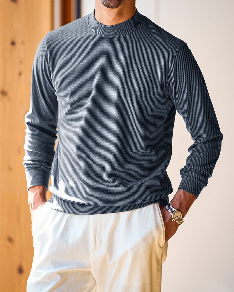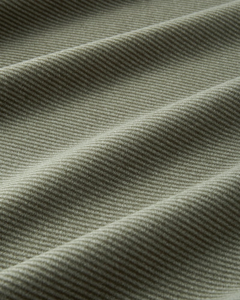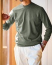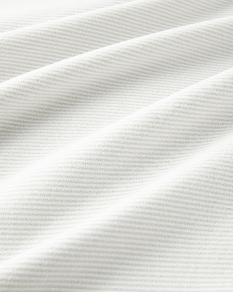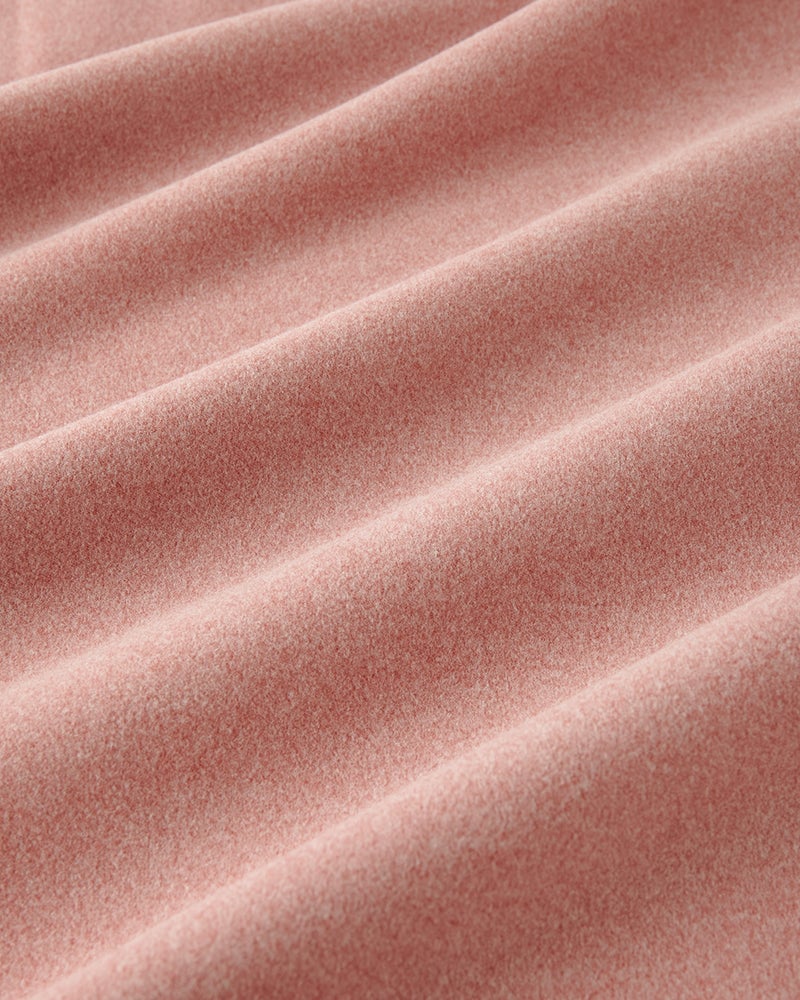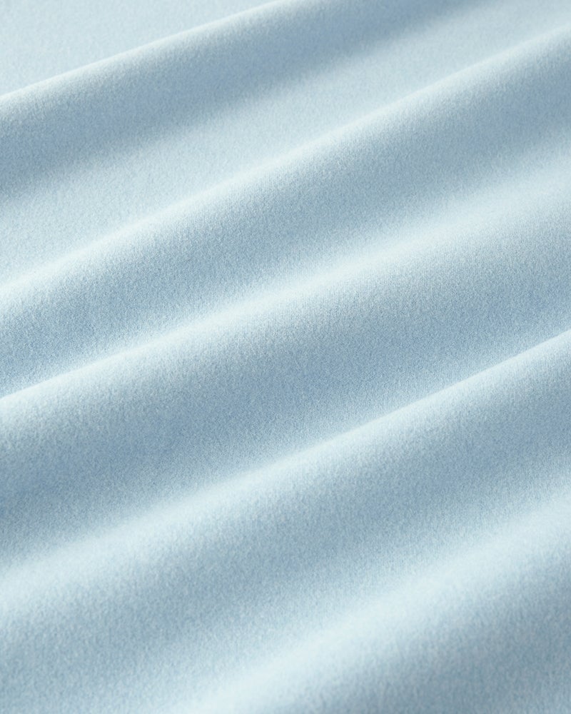 生地の両面に起毛をかけた、なめらかな肌触りのウルトラソフト生地。起毛することで、繊維の間に空気の層ができて熱を逃さず、薄手なのに暖かい。首元までとろける肌触りのハイネックとタートルは毎年人気です。今年は新たにアームホールのワキ下前後に、汗の臭いを分解消臭するデオドラントテープを付けました。暖房の効きすぎた電車やオフィスで汗をかいても臭いが気になりません。