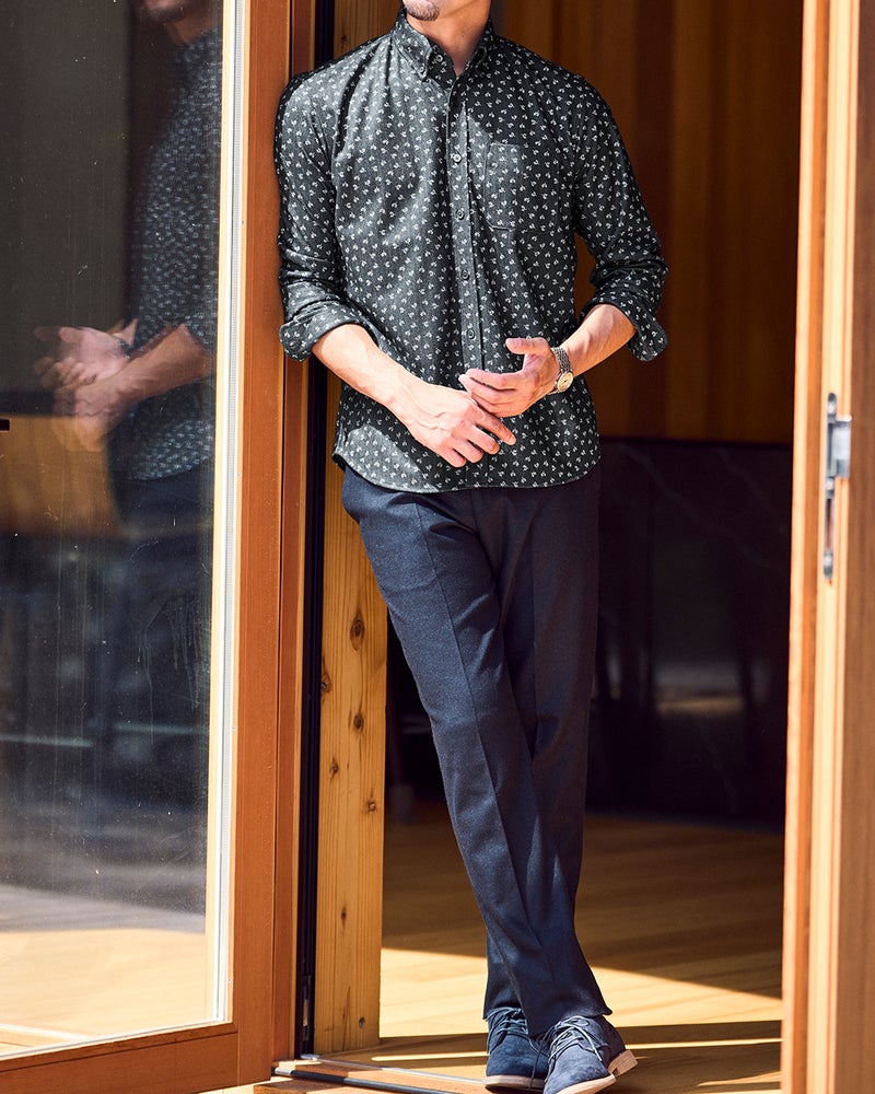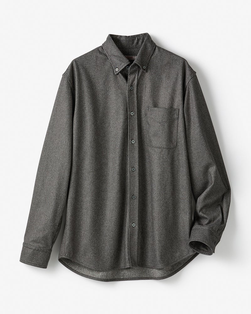 ウールのようなふくらみのある上品なジャージ素材「WOOLICK(ウーリック)」を使用。ほどよい起毛感のソフトな肌触り。見た目からは想像もつかない多機能を発揮します。軽くてストレッチ性のある快適な着心地。ノーアイロンレベルの防シワ性、アッという間に乾く速乾性にも優れています。着ている間もお手入れもラクな新素材シャツです。