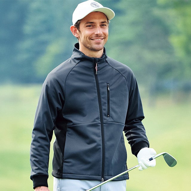 防風、保温機能に加え、新たに透湿機能を備え、汗を外へ逃がし、ムレにくく快適。プレー中の汗ムレを軽減します。