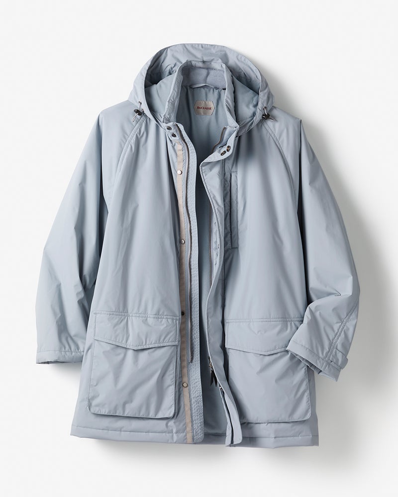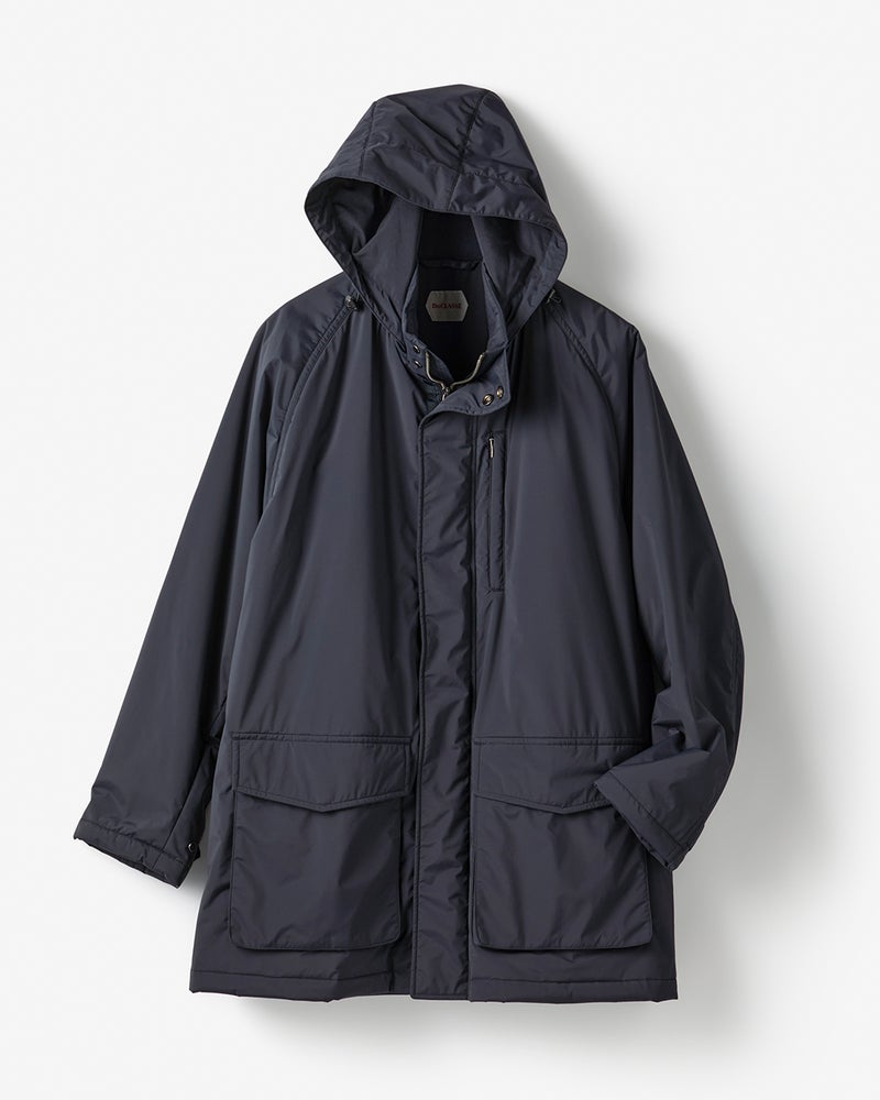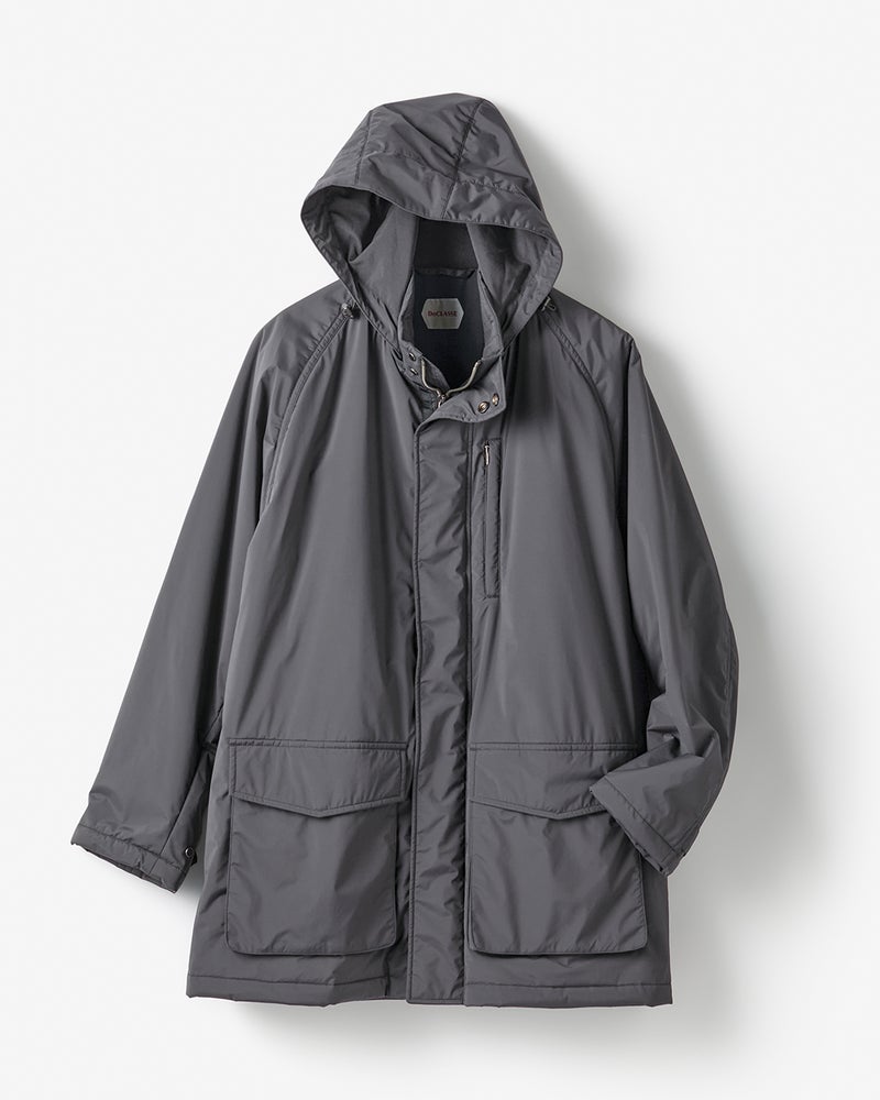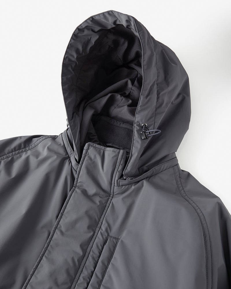 紳士的なルックスだから、ビジネスシーンでも洒脱に羽織ることができます。着脱可能なフードを外せば、ミニマルな印象のスタンドカラーになり、スーツにも違和感なくマッチします。