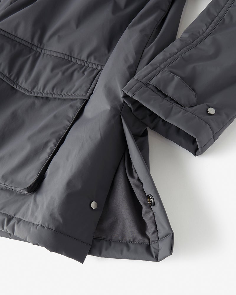 - 雨・風・雪・寒に打ち勝つ保温力のある中綿に加え、裏面には、さらに保温性と防風性を高めるラミネート加工を採用。表地はストレッチ性があるので動きやすく、撥水性も兼ね備えているので、雨や雪の日も安心。厳しい冬の寒さに打ち勝つコートです。