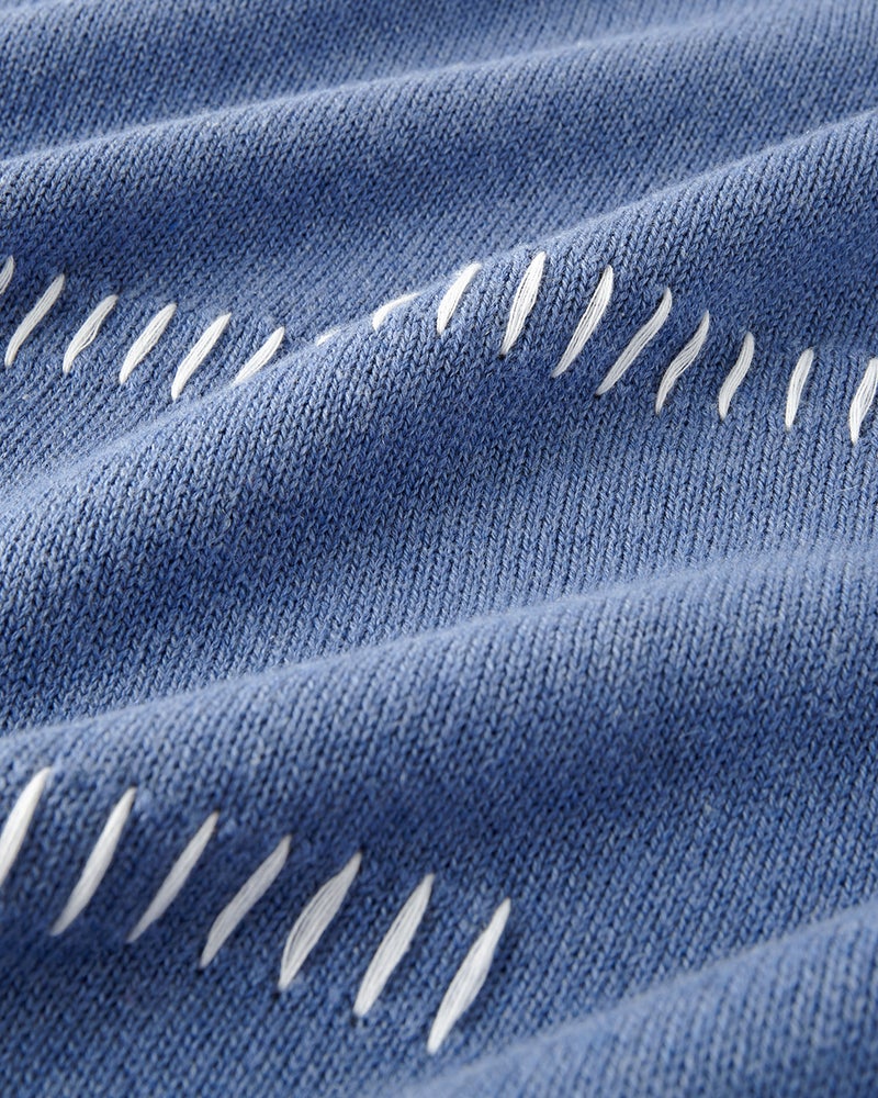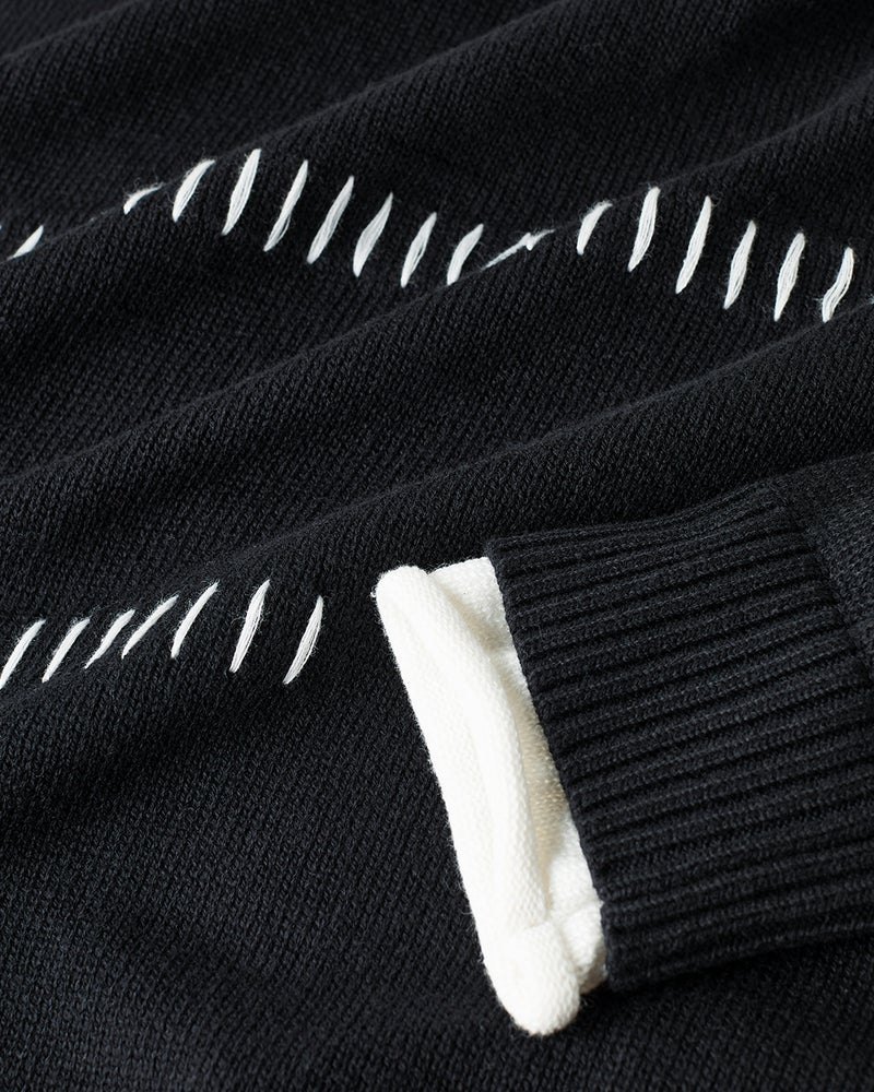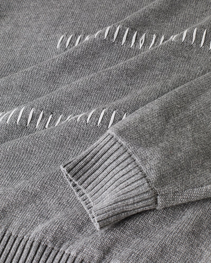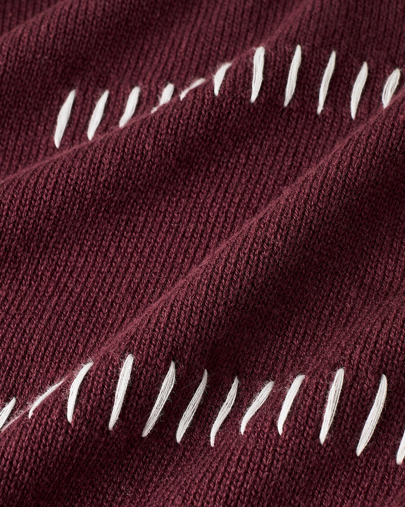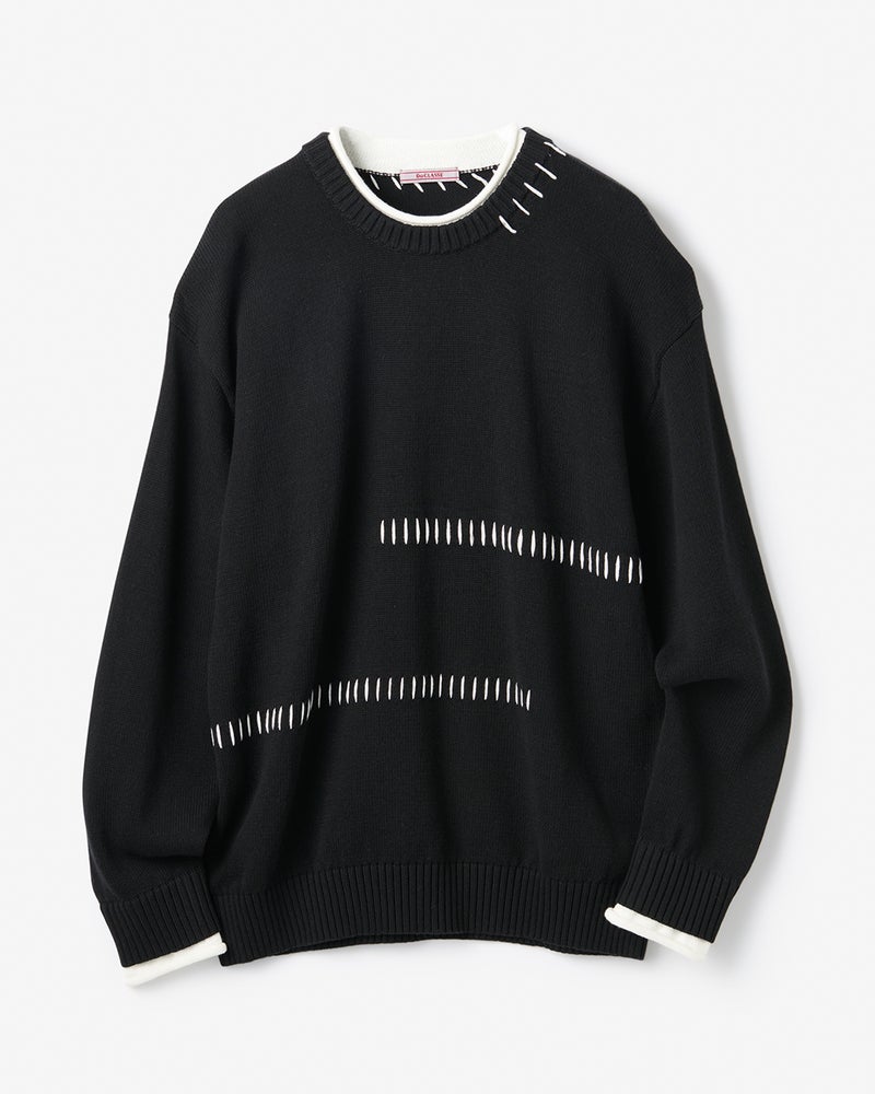 リラックスフィットのクルーネックセーターを、カシミヤ混の贅沢な素材で仕立てました。柔らかな肌触りは、毎日着たくなるほど。衿と袖口の内側にあしらった配色生地がチラリと見える重ね着風。衿周りと前後の身頃には遊び心のあるハンドステッチ。これ1枚着るだけでコーディネートが簡単に完成します。