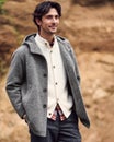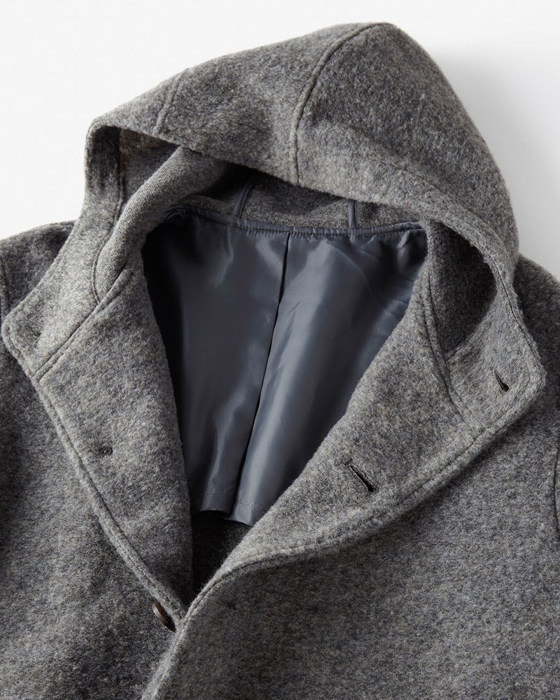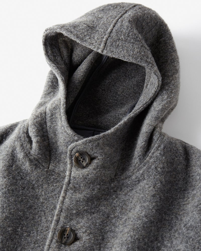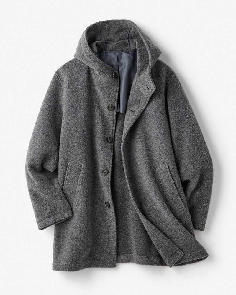 ウール混ストレッチボア・フーデッドコート