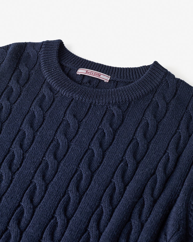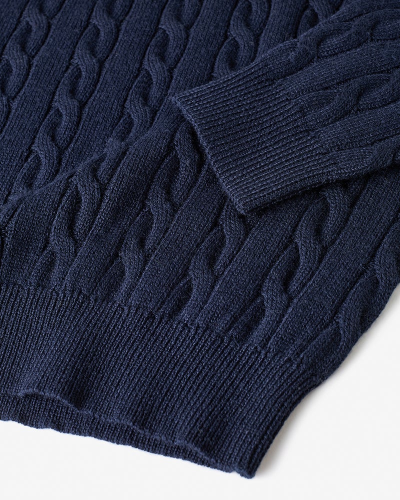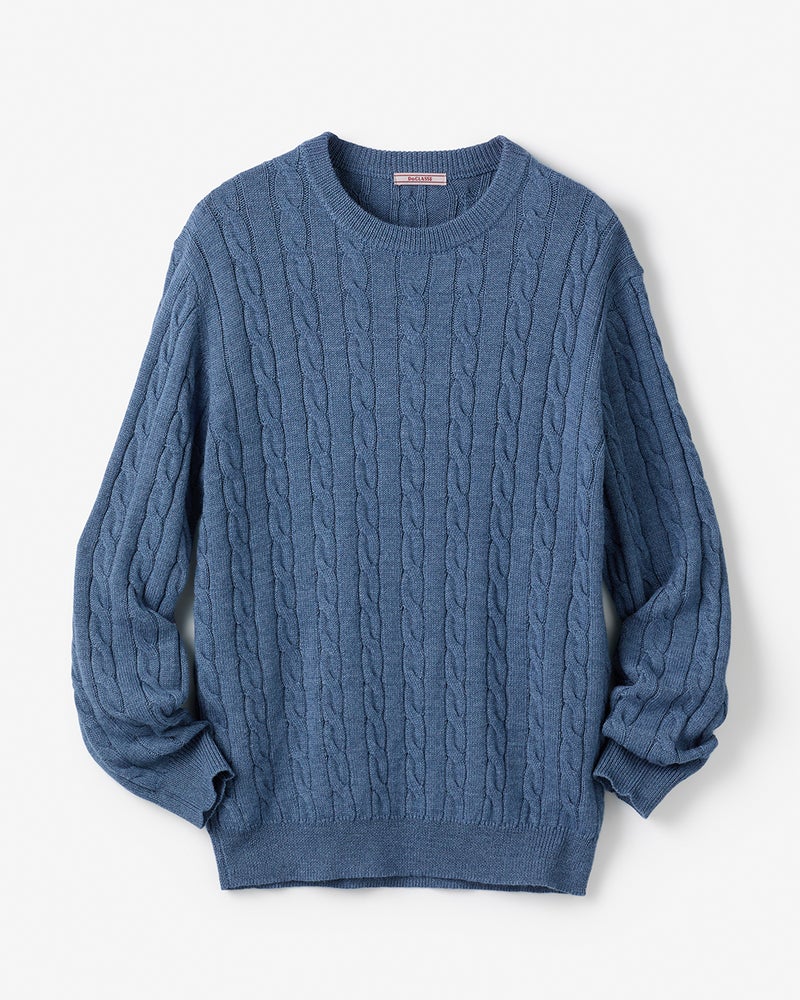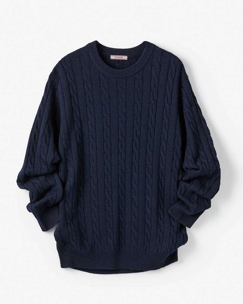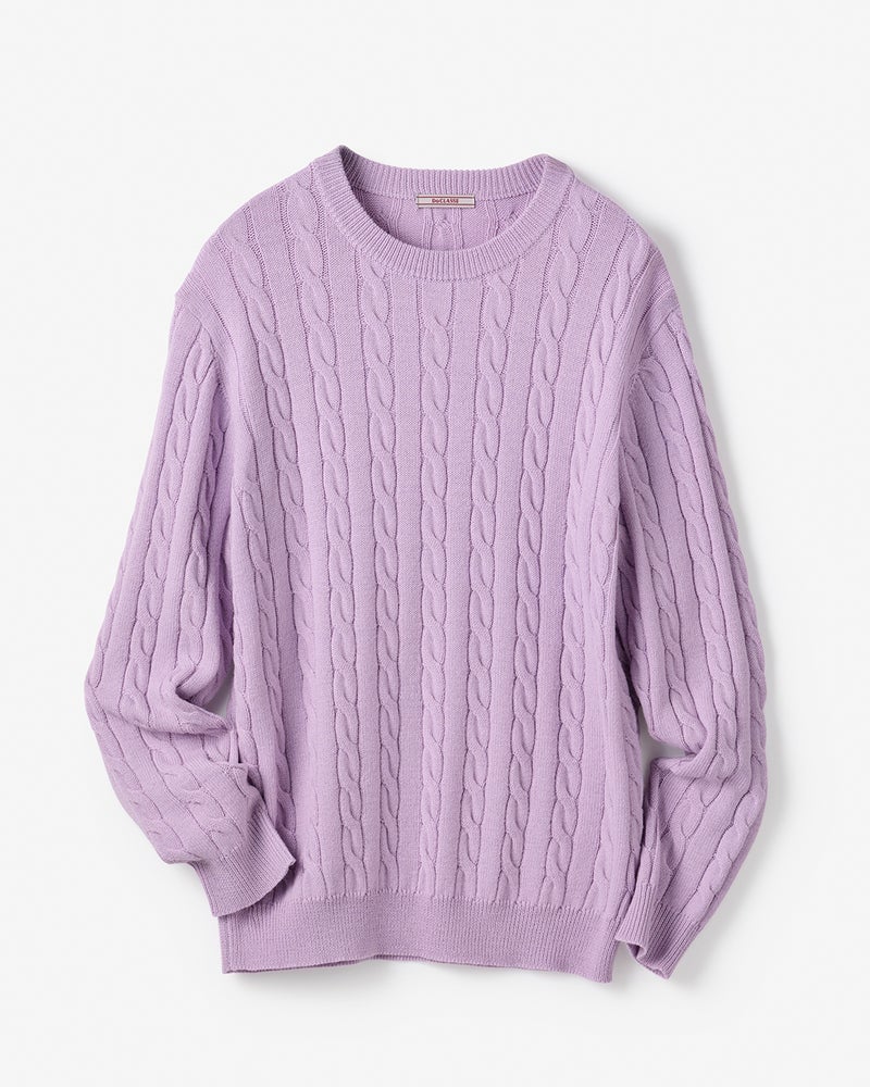 - 縄のように編んだデザイン性の高いケーブル編みのニット。1枚で着ても存在感があり、ジャケットやブルゾンのインナーとして着たら、コーディネートに個性を添えます。