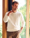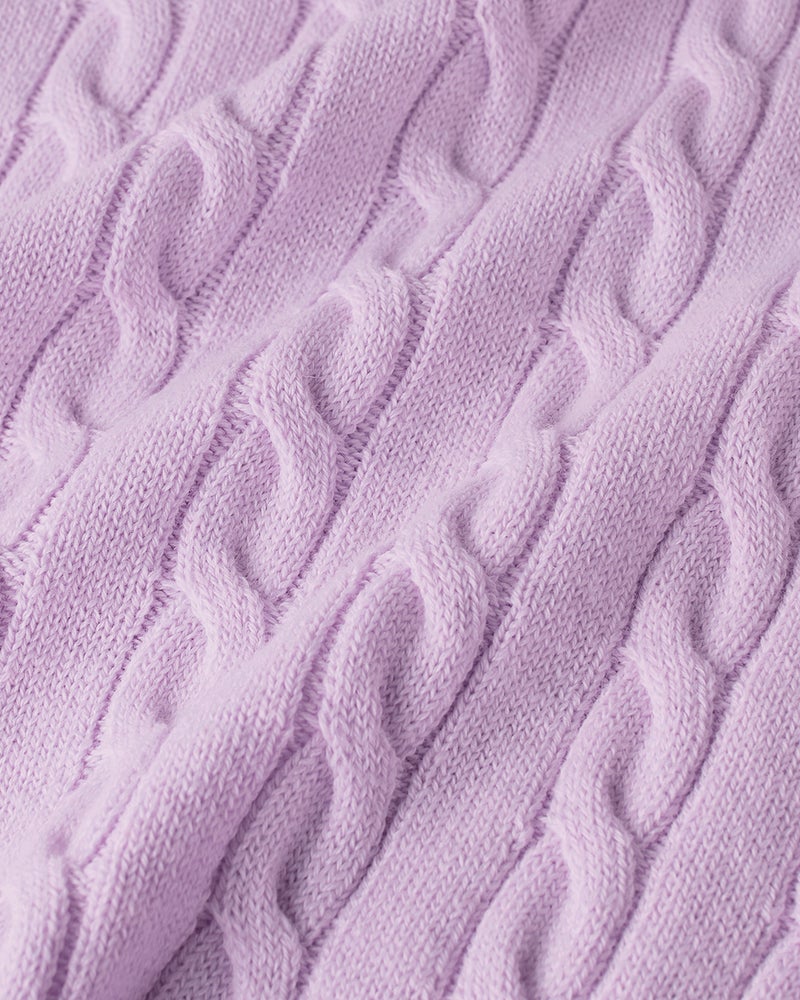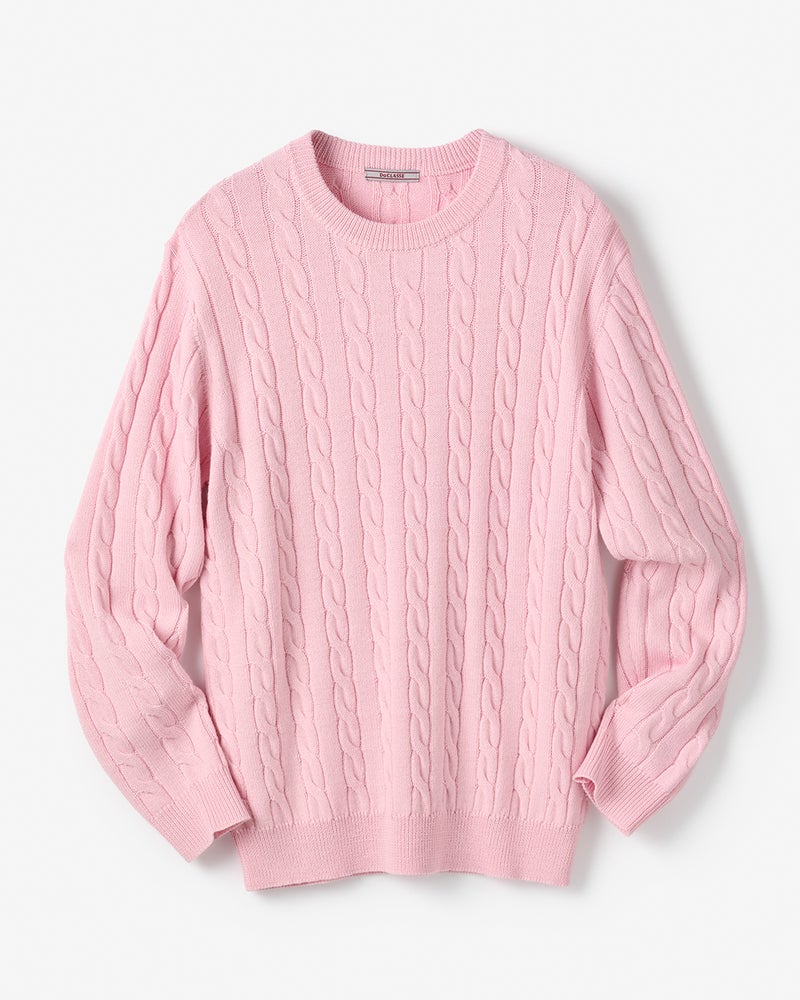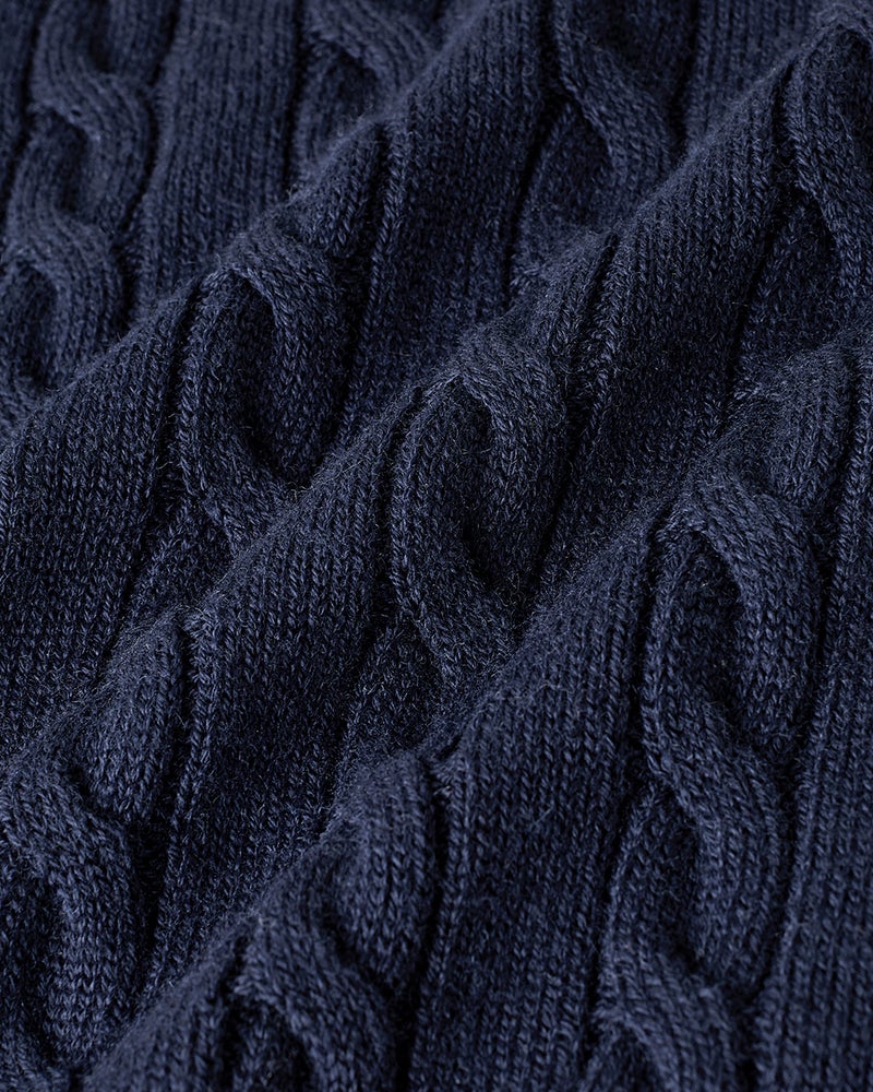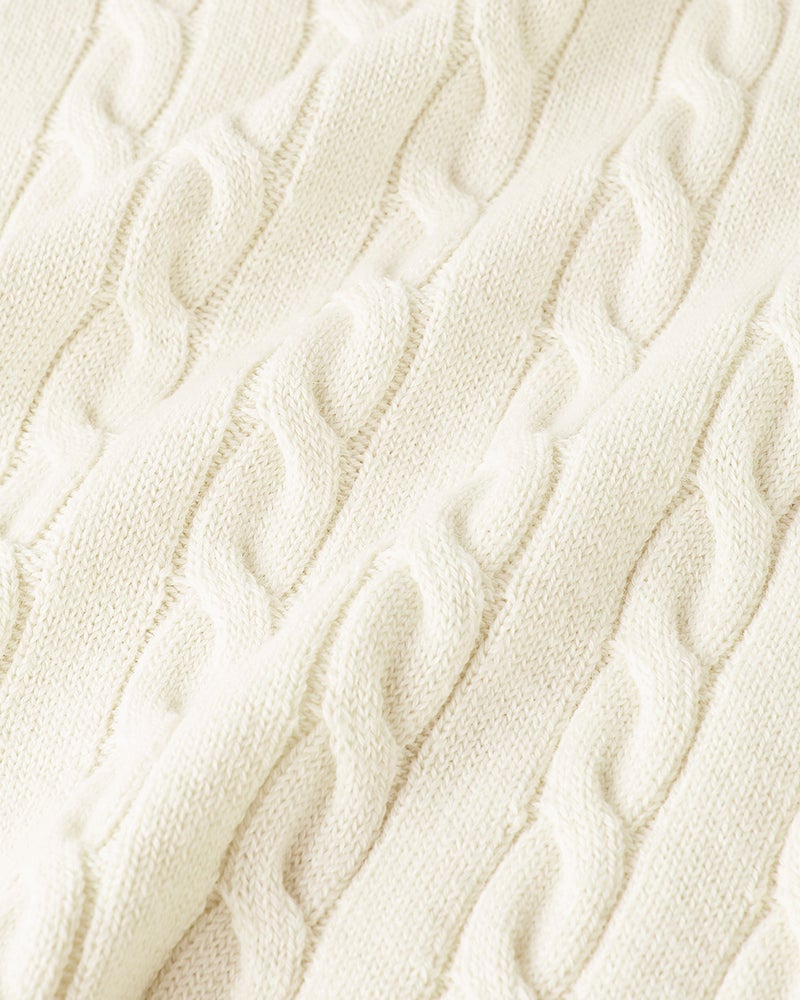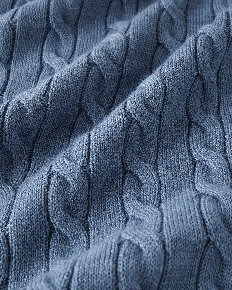 - 縄のように編んだデザイン性の高いケーブル編みのニット。1枚で着ても存在感があり、ジャケットやブルゾンのインナーとして着たら、コーディネートに個性を添えます。