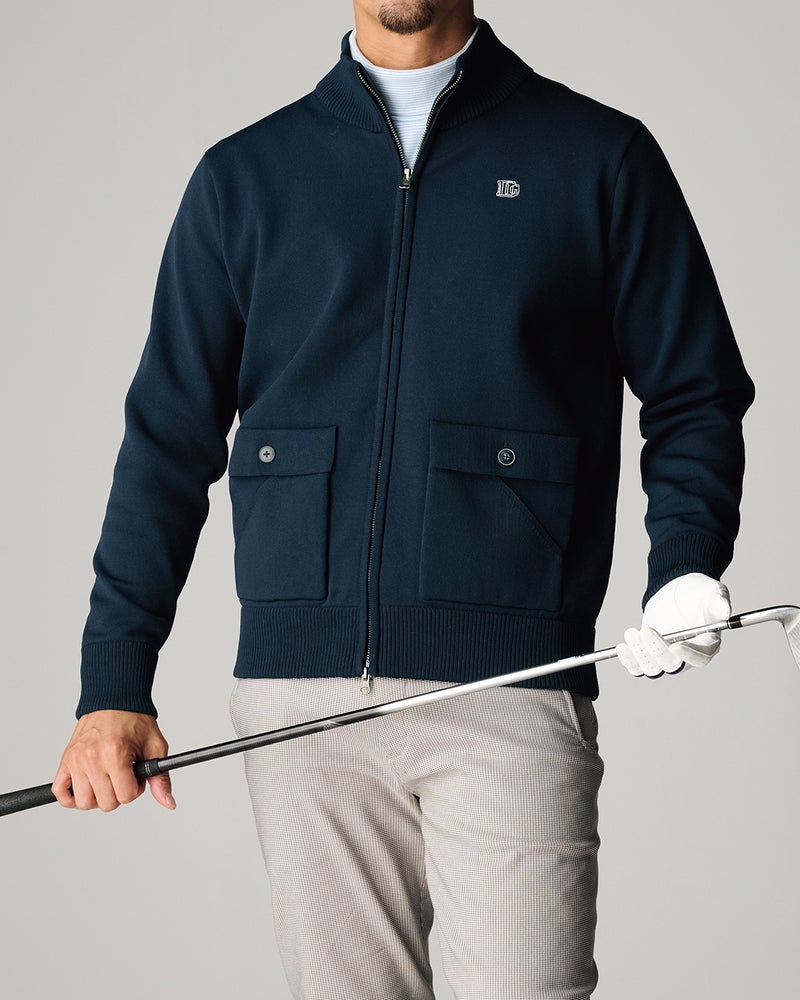 - 短めの丈が特徴のドライビングブルゾンを、ゴルフでも街でも着回せるデザインに仕上げました。天竺編みの表地とボアの裏地を接ぎ合わせたダブルフェイス素材。見た目よりもかなり軽量で、ストレッチ性に優れ、裏地のボアが保温力を高めます。シワになりにくく、ネット使用で洗濯機洗いできます。