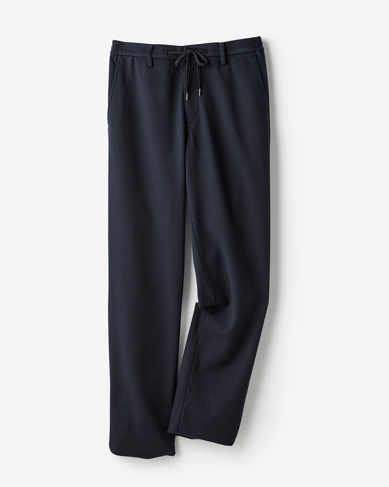 腰周りにゆとりのあるノータックのイージーパンツ。両面起毛させたふんわり心地いい生地は、360°自在に伸びる快適ジャージです。吸湿発熱性もあり暖かい。シワになりにくく洗濯機で洗えるからケアも簡単です。