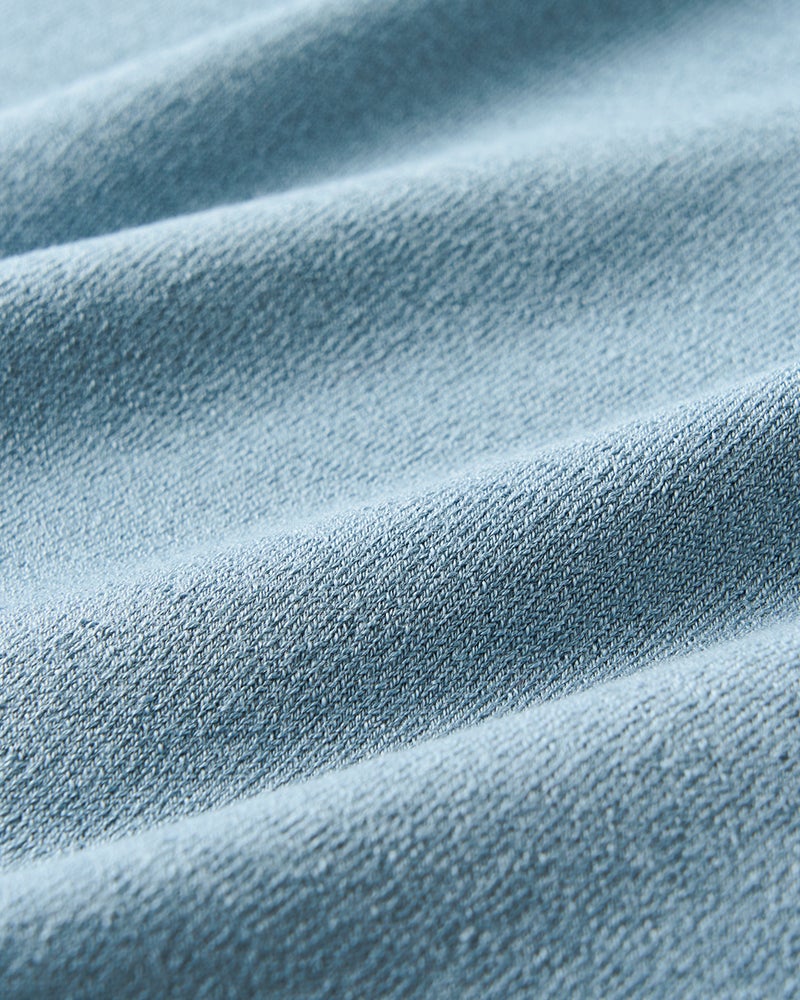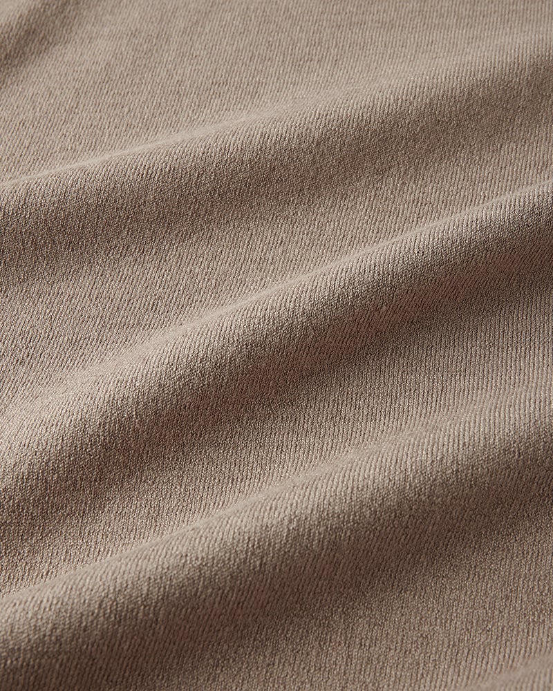 化粧品でも使われる保湿成分“シアバター”を糸自体に練り込み、製品となった後の仕上げに“椿オイル”加工を施しました。2つの保湿成分を配合して、しっとりソフトな肌触りを実現。