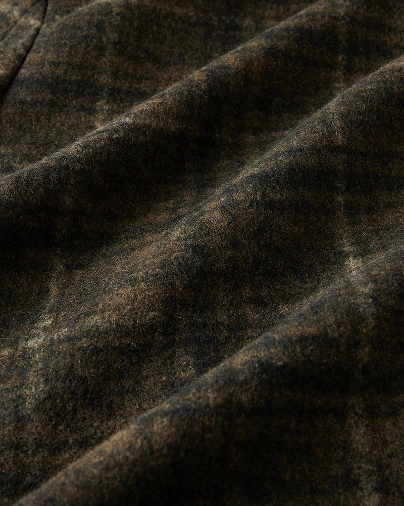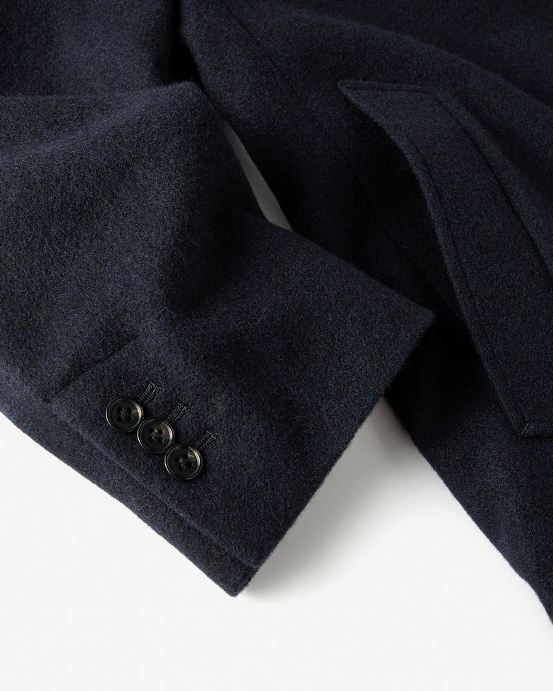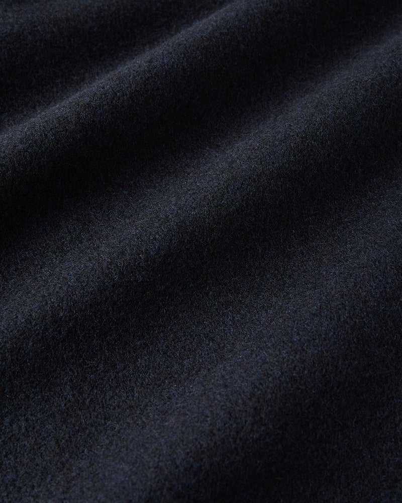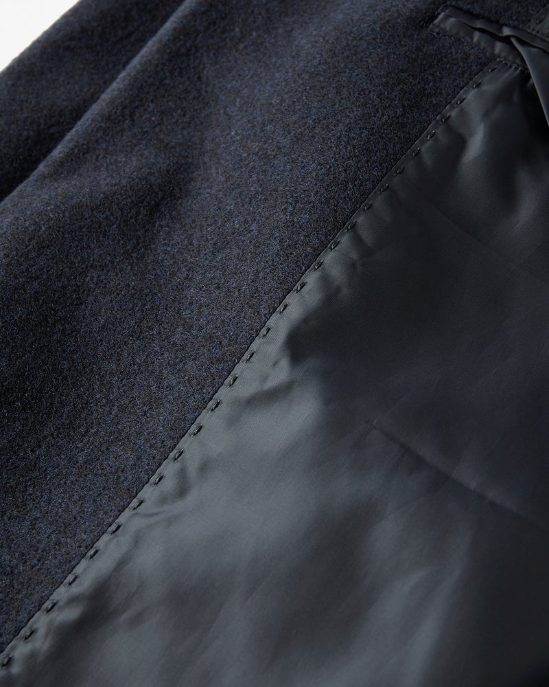 - 軽量なウール混のスタンドカラーコート。平織りの生地に起毛をかけた生地の質感は、柔らかで温もりがあります。ウール混ならではの保温性と吸湿性で、暖かくムレにくい。防シワ性もあり、長時間着用してもシワになりにくい。衿がしっかりと立つスタンドカラーは、上品かつ男らしい印象を演出します。