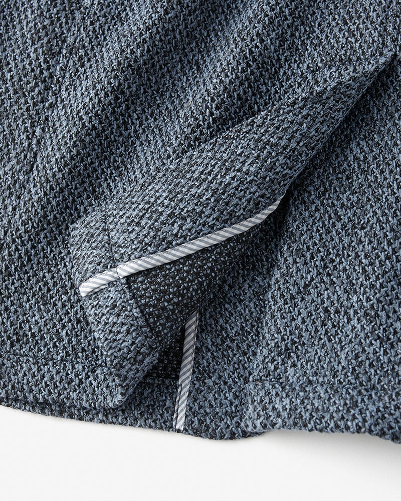ラッセル編みの生地は、ストレッチ性があり、通気性にも優れ、シワになりにくくお手入れも簡単。ラッセル編み特有の凹凸が、上品で軽やかな印象を生みます。仕立ては見返しを広く取る大見返しを採用し、副資材を極力省いたアンコン仕立てだから、ストレスフリーな着心地です。適度な肉感があるので冬も活躍して、通気性のいいラッセル編みだから春も快適に着られます。