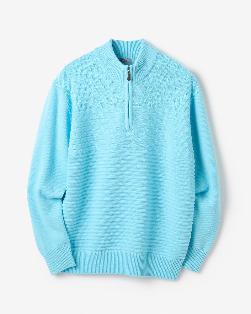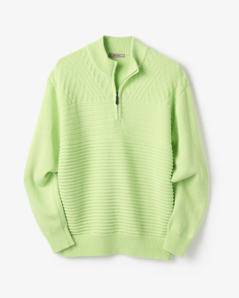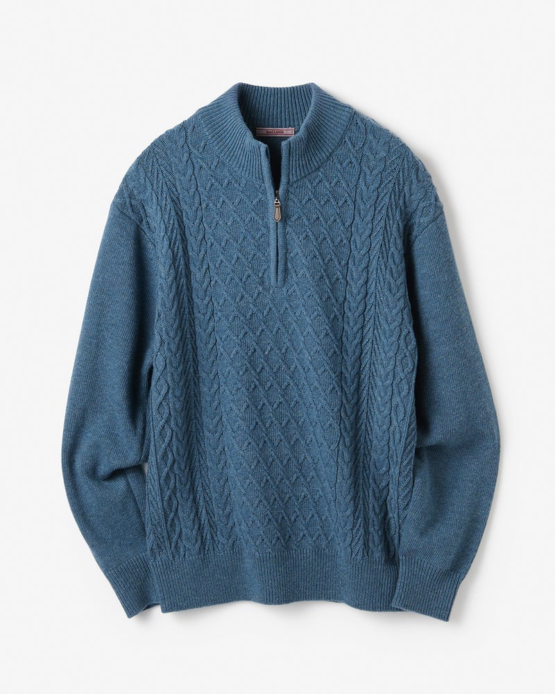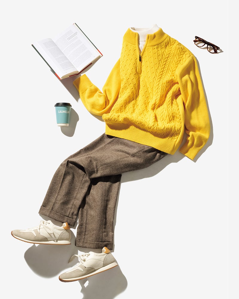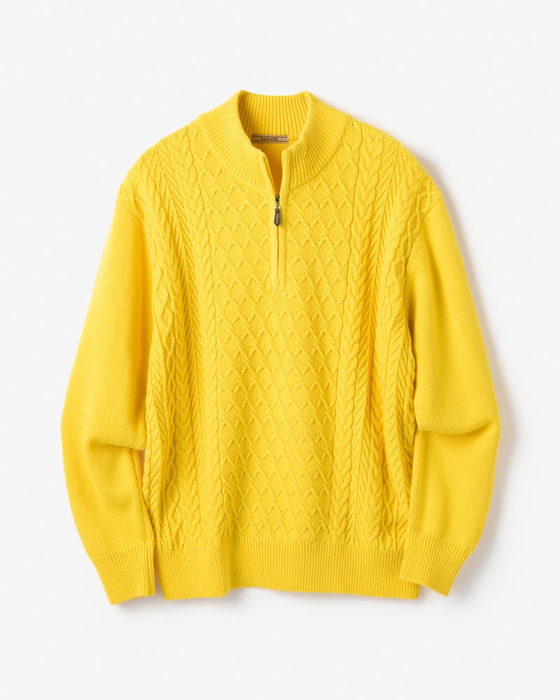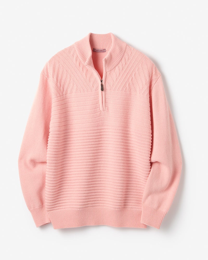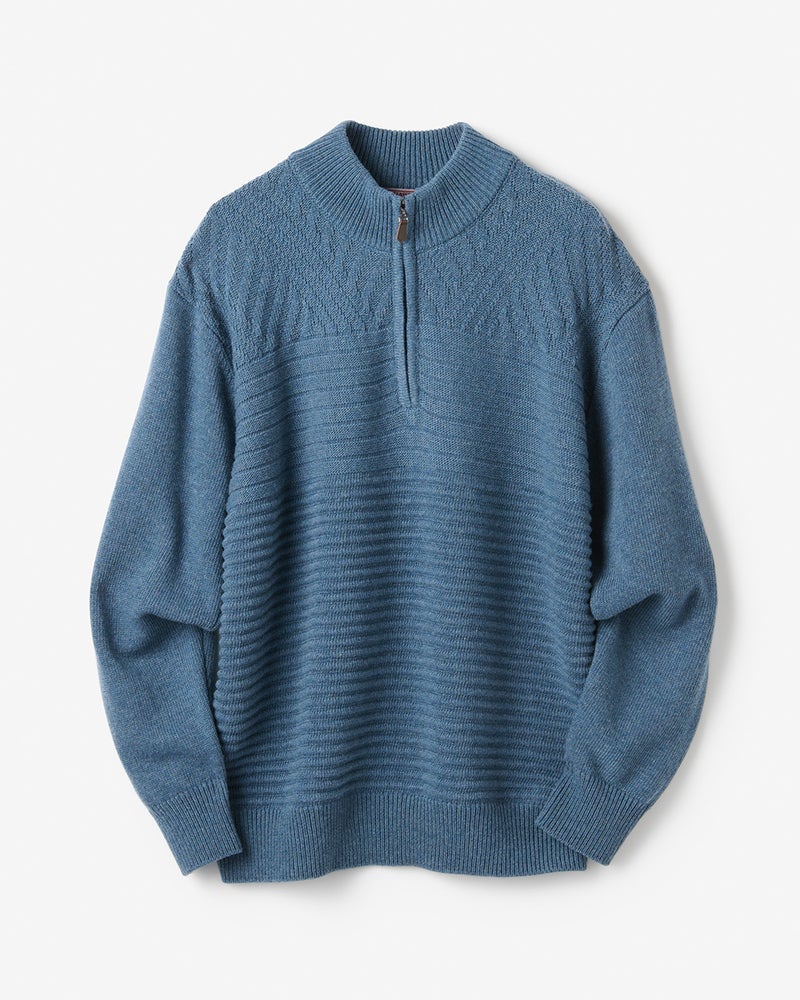 インナーの見せ具合を調整でき、首元がこなれた感じにキマるハーフジップセーター。毎年人気のアイテムです。完全に閉める、半分開ける、全開にするなど、ジップの開き具合で着こなしの変化を楽しめます。