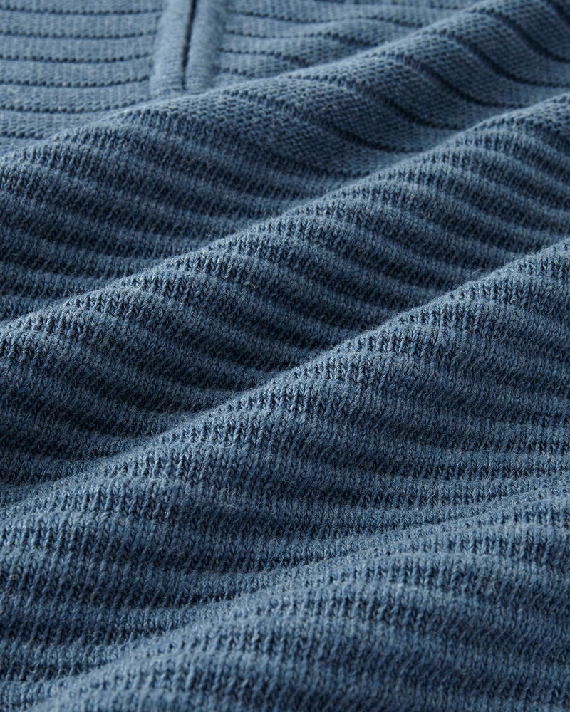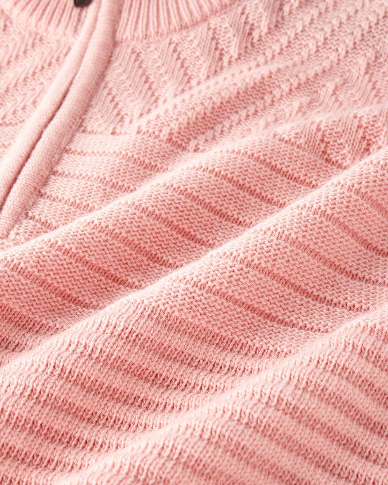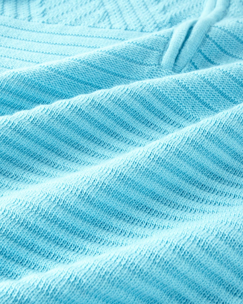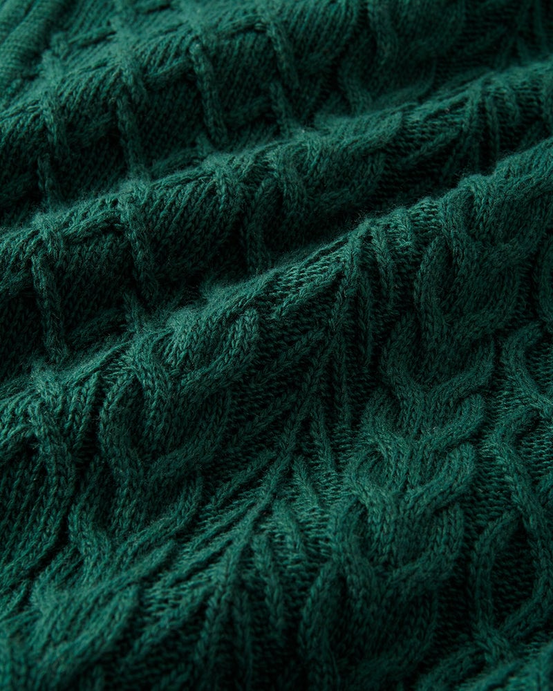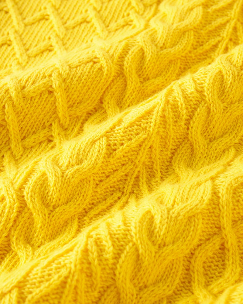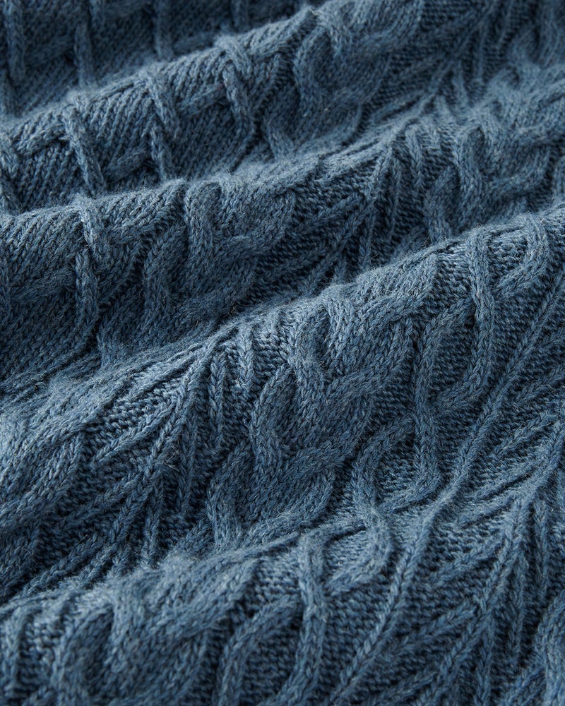 前身頃を、変形ケーブル編みでフィッシャーマン風の凝った柄模様に仕上げました。袖はすっきりとした天竺編みです。(※前身頃の胸部分から下が切り替えのボーダー編みも近日発売予定)
